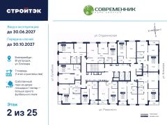 Время жить счастливоСовременник — знаковый парк-квартал в интеллигентном районе Втузгородок, откуда недалеко до центра, а вблизи ведущие вузы и театры. Квартал состоит из 8 очередей строительства. Шесть очередей уже сданы и заселены, седьмая строится. В продаже квартиры от застройщика: 1 этап строящейся 7-й очереди. Объединяет квартал большой внутренний парк площадью в гектар — богатый прогулочными маршрутами, тенистыми деревьями, пространствами для отдыха, спорта и детских игр. С внешней стороны, у домов седьмой очереди, появится гостевой центр.Проект создавали в KCAP Architects and Planners, архитектурном бюро из Нидерландов, чьи работы украшают ландшафты Гамбурга, Роттердама, Антверпена и других городов Европы. Современные технологии, продуманное пространство и трендовый облик зданий создают размеренную и счастливую атмосферу для жизни здесь.Достойное окружениеДо проспекта Ленина на машине вы доберётесь за 10 минут, а с другой стороны, неподалёку — Шарташский лесопарк с озером Шарташ, которому около миллиона лет. Здесь для вас пляжи, лодочные станции, тропы для бега, спортивные площадки и кафе.В квартале уже работают супермаркеты, пекарни, салон красоты и не только. Ближние школы, гимназии и университеты помогут расправить крылья новым поколениям, а детские сады станут заботливой средой в начале пути. Кстати, на территории квартала спроектирован муниципальный детский сад на 200 мест.Выходите во дворГуляйте по зелёным аллеям или устройтесь с книгой в гамаке. Займитесь воркаутом, футболом, баскетболом или пинг-понгом. Проводите семейные праздники под крытым амфитеатром или отправьте детей весело играть на насыщенный плейхаб. Мы всё предусмотрели.На закрытой территории без машин и посторонних спокойно и безопасно. Видеонаблюдение и освещение добавляют ещё больше уверенности.Впечатляющая доминанта у домов 7 очереди — новый гостевой центр: камерное пространство под навесом-перголой с озеленением и скамейками, чтобы встречать друзей или просто коротать вечер.Ваша зона комфортаСтильное лобби Современника мы выполним в эстетике contemporary: минимализм, сочетание дерева со штукатуркой и тёмным металлом, зеркала, витражи. Обстановка из мягкой мебели, растений и книг.Двери из холла выходят на обе стороны. Внутри — специальная комната для колясок и самокатов. На минус первом этаже подземный паркинг с 201 машино-местом, куда легко попасть на лифте прямо с вашего этажа. Здесь же можно приобрести одну из 67 кладовых, чтобы хранить сезонный инвентарь и крупную технику.СТРОЙТЭК возводит 7 очередь в 3 этапа.Дом с привилегиямиПервый этап — секция 7.1, отдельная башня в 25 этажей. Здесь 246 квартир в 19 уникальных планировках от студий до 3-комнатных, в классических и евро-вариантах. Просторные кухни-гостиные, гардеробные и окна на 2 стороны — лишь часть их плюсов.В Современнике улучшенный стандарт отделки ''Комфорт +''. Помимо привычных комфортных сантехники и электрики, в него входят оконные стёкла Energy Light, которые помогают сохранять комфорт
