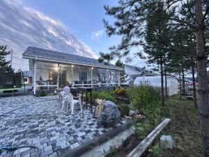 Тёплый уютный. Прихожая 24 кв м с тремя панорамными окнами и тёплым полом. Широкий коридор-гардеробная. В ванной комнате тёплые полы, три вместительных шкафа-пенала. Светлая кухня с газовой варочной панелью. Рабочий кабинет 7 кв м. Просторная зала 20 кв м с открытой лестницей на второй этаж и тремя окнами. На верху спальные комнаты: 15 кв м с двумя окнами и 30 кв м с четырьмя окнами (при желании можно сделать две комнаты). Между комнатами можно расположить огромный шкаф либо организовать зону отдыха для чтения книг. Первый этаж из цельного бревна (11 метров). Второй этаж - каркасный: весь пиломатериал камерной сушки, утеплитель Эковер 50 плотность в четыре слоя, гидро/пароизоляция DU PONT . Кровельный материал - мягкая кровля. Дом частично обшит японской фиброплитой Ничиха и часть плиты остаётся покупателю - обшить дом со стороны ограды. Также выведен газ на будущую баню. В доме весь день светло, так как много окон и солнце от рассвета до заката попадает. Электропроводка медная новая. Розетки и освещение разделены. Ввод в дом заменён. Остановка напротив дома. Садик, школа, почта, магазины, пвз озон, ж/д остановка 125км - тоже рядом.