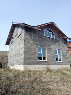 продается дом 2022 года постройки. Дом из газобетона, обшит деревом,своя скважина с чистейшей водой( анализ СЭС). Дом двухэтажный: 1 этаж: кухня, прихожия, гостевая, санузел, котельная, терраса.2 этаж: три спальни. Участок 15 соток (30*50м) разделён на две зоны декоративным деревянным забором: 1 зона: дом, детский игровой комплекс, баня с терассой, монгальная зона, Чан под крышей, большой навес под машину, вся зона отсыпана щебенкой. 2 зона : теплица 3*10, огород, много молодых насаждений, мастерская. Въезд на участок с двух сторон, откатные ворота с двух сторон. электроэнергия 380 в. 32 кВт. газ на границе с участком. имеется погреб. Дом расположен на тихой, тупиковой улице, место живописное. Дом полностью готов к проживанию, дополнительные фото дома внутри по запросу.