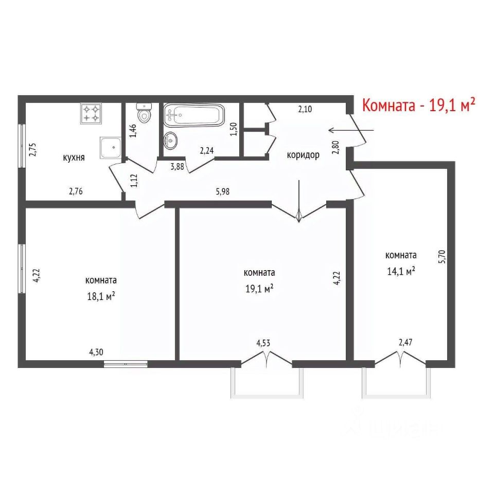 Продается просторная комната площадью 19,4 кв. м в современной трехкомнатной квартире. Помещение отличается исключительной светоносностью благодаря удачному расположению окон и качественной отделке в нейтральных тонах. Ремонт выполнен с применением практичных и долговечных материалов, что позволяет новому собственнику заехать без дополнительных вложений и затрат. Комната полностью готова к проживанию. Квартира расположена в хорошо спланированном районе с развитой социальной и коммерческой инфраструктурой. В непосредственной шаговой доступности находятся общеобразовательная школа, детские сады, колледж и филиал университета. Повседневные потребности легко обеспечить благодаря близости супермаркета, аптеки, отделений банков и множества других сервисов. Транспортная доступность является ключевым преимуществом: в нескольких минутах ходьбы расположена остановка, с которой курсируют автобусы и троллейбусы во все ключевые районы города, включая центр и главные транспортные узлы. Объект принадлежит одному совершеннолетнему собственнику, что гарантирует юридическую чистоту и максимально быстрый выход на сделку. Это предложение представляет собой оптимальное сочетание выгодной цены, готовности к немедленному заселению и перспективного расположения Код пользователя: 184597 Номер в базе: 9805833