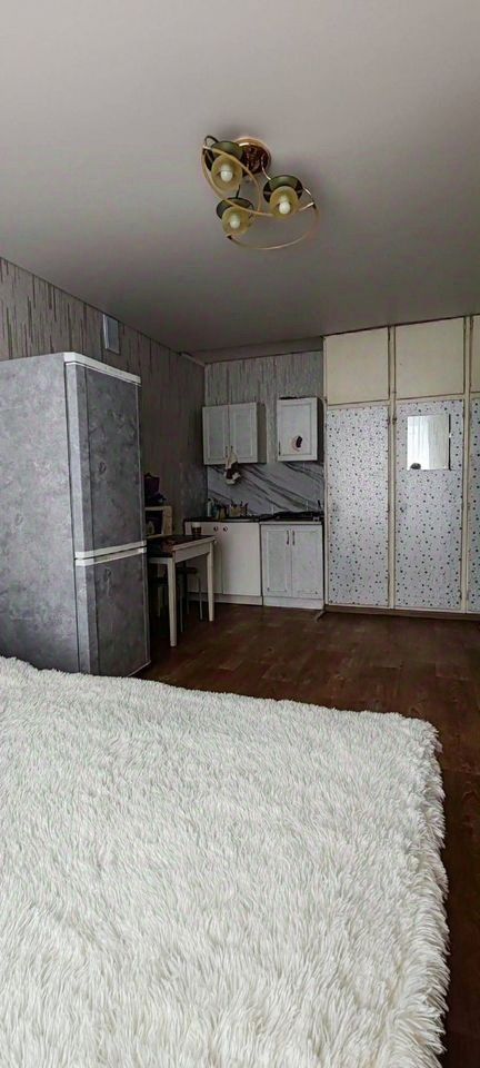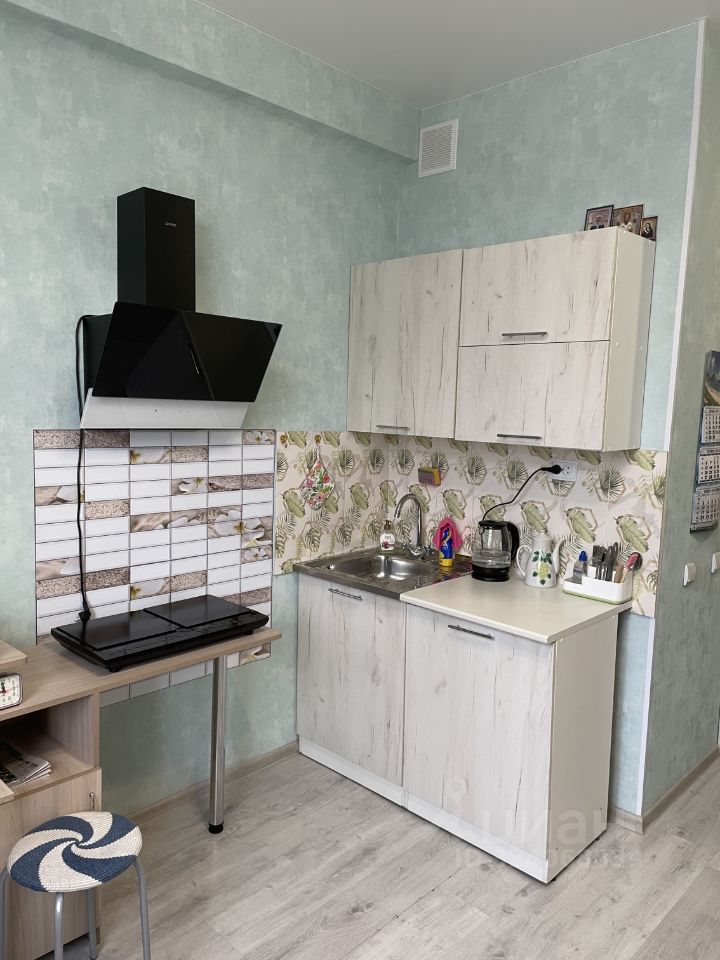 Уютная, ухоженная студия. Кухонный гарнитур, вытяжка, стиральная машина, шкаф, светильники остаются новому владельцу. Развитая инфраструктура: школа, детские сады, сетевые магазины, остановки общественного транспорта в шаговой доступности. Очень удачное расположение. Один собственник. Документы готовы. Без обременений.