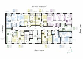 Дом 5Класс дома: комфорт. Отделка: чистовая (под ключ) включена в стоимость. Скидка при выборе предчистовой отделки. Размер скидки уточняйте в отделе продаж. Вид из окон: на дендропарк и во двор-парк.Б.26 дом на высоте современный жилой комплекс в районе Втузгородок (пересечении улиц Блюхера и Мира).До центра города 20 минут ходьбы.В шаговой доступности находятся:ВУЗы (Уральский федеральный университет, Юридическая академия)Дендрологический парк.школы (Гимназии 35, 47, 108, Лицей 130)детские сады ( 421, 423, 332, 352)остановки общественного транспорта (ул. Мира, ул. Блюхера, ТК Современник).торговые центры (Апельсин, Современник, Галерея 11, Blissco молл)Современная архитектура. Долговечные фасады из навесных панелей и штукатурки, увеличенные окна и французские балконы формируют уникальный узнаваемый образ. Ночная подсветка выделяет дом среди застройки района и подчеркивает выразительность его силуэта.Двор без машин. Игровые площадки для детей разных возрастов, места отдыха и занятий спортом для взрослых не соседствуют с парковкой.Динопарк. Игровые зоны созданы в стиле таинственного мира динозавров.Парк во дворе. Многоуровневое озеленение c прогулочными дорожками, беседками и качелями.3 уровня безопасности. Контроль доступа по карте жителя, эффективная система видеонаблюдения, консьерж-сервис.Дизайнерские холлы. Парадный холл с остеклением в пол, зонами ожидания, гостевым санузлом и санузлом для мытья лап животным, а также колес велосипедов и колясок.Сервисная компания от застройщика. Обслуживанием дома будет заниматься профессиональная команда.Строительные и технические преимущества.Индивидуальный тепловой пункт: снижает затраты на отопление.Система очистки улучшит качество воды в доме.Пятикамерные окна задержат шумы и холод.Клапан вентиляции позволит проветрить комнату, не устраивая сквозняк.Горизонтальная разводка отопления: трубы спрятаны в полу.Счетчики с телеметрией. Отдельный счетчик на отопление у каждой квартиры.Отведение конденсата для кондиционеров.Высокий уровень шумоизоляции у стены квартир.Бесшумные, скоростные лифты.