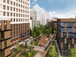 Премиум кварталы ''Маяковка'' представляют собой архитектурную композицию, сочетающую в себе высотные башни и пять дворовых блоков. Это величественное сооружение высотных башен существенно выделяется на фоне городского ландшафта, создавая привлекательный и изысканный облик района, формируя город в городе.