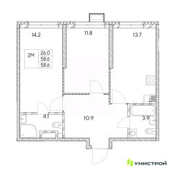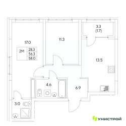 58 м2