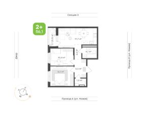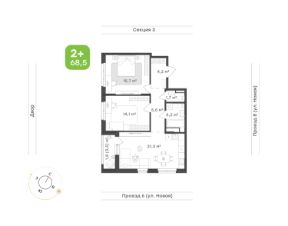 Двухкомнатная квартира для современной семьи Концепция ''тихий дом'': все квартиры в доме с чистовой отделкой, никаких шумных ремонтных работ с утра до вечера Отдельная кухня 10,4 м² с выходом на лоджию 3,8 м² с панорамным остеклением открывает завораживающий вид на город, наполняя пространство естественным светом и создавая атмосферу лёгкостиРодительская спальня 13,3 м² с местом под шкаф становится уютным уголком для отдыха, обеспечивая идеальное сочетание приватности и функциональностиКомната 11,0 м², которую можно использовать как детскую или кабинет, с продуманными местами под хранение, позволяющими легко организовать пространствоДва санузла один 4,5 м² с местом под ванну и стиральную машину, и второй 2,6 м² с местом под душевую кабину для быстрого освежения отвечают всем требованиям современной жизниПрихожая 5,5 м² с местом под шкаф встречает продуманной системой хранения, создавая порядок с самого порогаКоридор 3,3 м² логично объединяет все зоны квартиры, облегчая перемещение по квартире