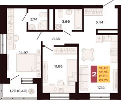Торопитесь оформить бронирование по акционной цене! Предложение ограничено! Стоимость квартиры указана со скидкой, ваша экономия составит 905,377 RUB. По всем вопросам обращайтесь в офис продаж, мы вам все подробно расскажем! 2-комн. квартира от застройщика с отделкой в ЖК ''Милый дом'' на 14 этаже. Общая площадь: 61.48 кв.м., жилая: 22.6 кв.м., площадь просторной кухни-столовой: 19.22 кв.м. Комнаты изолированные, все окна выходят на одну сторону. В квартире один совмещенный санузел. Высота потолков 2.72 м. Дом монолитный, двухподъездный, переменной этажности, от 15 до 29 этажей. Квартира находится в 1-й секции высотой 15 этажей в корпусе 1. На этаже 8 квартир. В подъезде 1 пассажирский и 1 грузовой лифт. Окончание строительства - 1 квартал 2026 года. Оформление сделки по договору долевого участия. Дом ''Милый дом'' — это проект комфорт-класса от застройщика BAZA Development, расположенный на Юго-Западе. Жилой комплекс включает две очереди с подземным паркингом, автомойкой, общественными пространствами и пешеходной аллеей длиной в семь кварталов. Это дом, где всё включено. Вместо поездок в отели 5, мы предлагаем комфортное проживание в ''Милом доме'', где любой вопрос решается нажатием кнопки лифта. Жителей и гостей первой очереди на улице встречает фотогеничное пространство — плаза с качелями, шезлонгами и арт-объектом, внутри — огромное лобби с круглосуточным ресепшеном, сотрудником управляющей компании и кофейней DUO. В проекте второй очереди предусмотрены детский клуб и спортзал. На 30 этаже первой очереди расположен комьюнити-центр с панорамным видом на город. Это бесплатное общественное пространство для работы, встреч и отдыха с друзьями, где можно провести время от фортепианного вечера до гриля. Вас ждут переговорки, чилл-аут зона, кухня и гриль-зона. На подземных этажах находится тёплый паркинг и автомойка. Вы можете привезти авто сами или воспользоваться услугами ресепшена — мы заберём машину, помоем и вернём обратно. ''Милый дом'' открывает застройку семи кварталов, создавая ''новый центр города''. Главная зелёная артерия района — прогулочная аллея, идеальная для вечерних прогулок и встреч с друзьями. Команда УК BAZA — одно из подразделений застройщика. Офис УК находится прямо в доме. Каждый месяц УК измеряет индекс лояльности с помощью telegram-бота, в прямом эфире проводятся online-собрания, а для жителей есть удобное приложение, чтобы оплатить коммунальный услуги и оставить обращение. Также УК организует праздники, мероприятия и мастер-классы для жителей. #2m290o