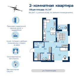 Продаётся 2-комнатная квартира в строящемся доме (Дом 1), срок сдачи: IV-кв. 2025, общей площадью 64.9 кв.м., на 11 этаже. Новый жилой комплекс ''Estelle'' от застройщика ''СЗ Инвестстрой'' расположен по адресу: г. Екатеринбург, улица Пехотинцев.