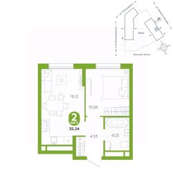 Квартира находится в ЖК ''Бодровский'' от федерального застройщика ''Паритет Девелопмент''. Это жилой комплекс комфорт-класса с современной архитектурой, расположенный в Екатеринбурге в районе улиц Патриса Лумумбы и 2-й Новосибирской.Добраться от него до центра города можно всего за 25 минут, дорога до ЕКАДа займет 12 минут. В окружении жилого комплекса есть шесть детских садов, пять школ, три больших парка, пять спорткомплексов, в том числе курортный комплекс Уктус.Квартал состоит из двух секций переменной этажности (от 14 до 24 этажей) и подземного паркинга с кладовыми, к которым можно будет спуститься на лифте. На первых этажах предусмотрены коммерческие помещения: жители смогут сделать маникюр, воспользоваться услугами ателье, выпить кофе с круассаном, не покидая своего района. Ввод в эксплуатацию в III кв. 2027 года.Территория комплекса огорожена от машин и посторонних людей. Озеленение с многолетними растениями и деревьями создает ощущение близости к природе. Двор наполнен всем необходимым: песочницы и качели для самых маленьких, интерактивная башня для детей постарше, воркаут-зона и места для отдыха. На всей территории реализована безбарьерная среда.В парадных выполнен авторский ремонт. За счет панорамного остекления и 4-метровых потолков там всегда много естественного света. Предусмотрены колясочные с местами для хранения спортинвентаря и креплениями для велосипедов.В проекте представлены студии, классические одно- и двухкомнатные варианты, а также двух-, трех- и четырехкомнатные квартиры в евроформате площадью от 25,32 до 76,65.Все планировки — функциональные и подходящие новоселам как с детьми, так и без них. Есть варианты с лоджиями, где можно организовать дополнительное пространство для отдыха, спорта или работы, а еще квартиры с мастер-спальней, гардеробной, двумя санузлами. В каждой предусмотрена вытяжная вентиляция с естественным побуждением, счетчики с телеметрией и корзины для кондиционеров.Характеристики квартиры:этаж - 5количество комнат - 2номер помещения - 37площадь квартиры - 35,24 кв.мЧтобы сэкономить время и деньги, можно приобрести квартиру сразу с ремонтом от застройщика. На выбор 3 конфигурации: базовый, с кухонным гарнитуром, с кухонным гарнитуром и другой мебелью - в светлом и темном оттенках. Ремонт можно включить в ипотеку.