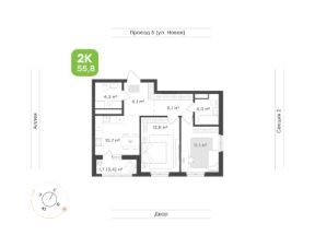 Двухкомнатная квартира для современной семьи Отдельная кухня 10,7 м² с выходом на лоджию 3,4 м² открывает завораживающий вид на двор, наполняя пространство естественным светом и создавая атмосферу лёгкостиРодительская спальня 12,8 м² с местом под шкаф становится уютным уголком для отдыха, обеспечивая идеальное сочетание приватности и функциональностиКомната 11,1 м², которую можно использовать как детскую или кабинет, с продуманными местами под хранение, позволяющими легко организовать пространствоДва санузла один 4,3 м² с местом под душевую кабину для быстрого освежения и стиральную машину, и второй 4,0 м² с местом под ванну для расслабляющих процедур отвечают всем требованиям современной жизниВ прихожей 6,1 м² с системой хранения каждая вещь найдёт своё местоКоридор 5,1 м² логично объединяет все зоны квартиры и создаёт дополнительное пространство для организации порядка и размещения шкафа-купе