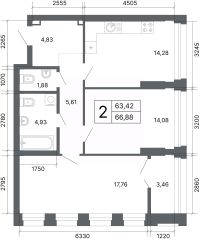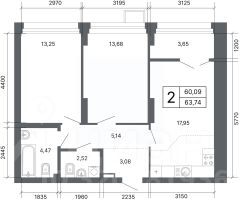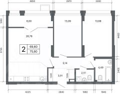 Продаётся 2-комнатная квартира в строящемся доме (Секция С1), срок сдачи: III-кв. 2026, общей площадью 70.2 кв.м., на 20 этаже. Многоэтажные жилые дома по ул. Металлургов от ГК ''Астра''. 1 очередь строительства