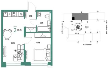 Продаётся 2-комнатная квартира в строящемся доме (Потенциал), срок сдачи: IV-кв. 2027, общей площадью 36.86 кв.м., на 2 этаже. Новый жилой комплекс ''Страна.Энтузиастов'' от группы компаний ''Страна Девелопмент'' расположен по адресу: г. Екатеринбург, по ул. Шефская.