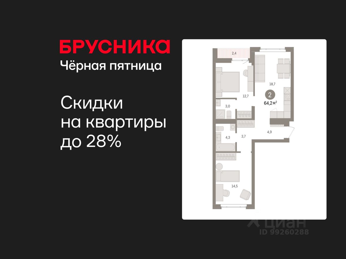 Успейте забронировать, пока действует скидка! Срок акции ограничен! Стоимость квартиры указана со скидкой, ваша экономия составит 360,000 RUB. Информация по телефону, наши менеджеры вам все расскажут! 2-комн. квартира от застройщика с предчистовой отделкой в ЖК ''Квартал Траектория'' на 4 этаже. Общая площадь: 64.2 кв.м., жилая: 27.2 кв.м., площадь просторной кухни-столовой: 18.7 кв.м. Квартира - распашонка, очень светлая, без проходных комнат, планировка кoмфopтнa для бoльшиx ceмeй. В квартире одна лоджия, два совмещенных санузла. Высота потолков 2.82 м. Дом монолитный, многоподъездный, переменной этажности, от 7 до 16 этажей. Квартира находится в 3-й секции высотой 7 этажей в корпусе 1-2. На этаже 6 квартир. В подъезде 1 грузовой лифт. Начало строительства - 4 квартал 2025 года. Окончание строительства - 4 квартал 2027 года. Оформление сделки по договору долевого участия. Квартира с кухней-гостиной и двумя спальнями в квартале ''Траектория''. Особенности планировки: окна на две стороны, вид во двор, лоджия, разнесённые спальни, предчистовая отделка, мастер-спальня. квартиры в нашей базе: МНВ01-Ж11.4.2. Квартал ''Траектория'' строится в границах улиц Билимбаевской, Расточной, Монтажников и Маневровой Раньше здесь находился оборонный завод 5-ЦАРЗ, основанный в 1945 году. После войны он ремонтировал военную и грузовую технику — от ''Виллисов'' и ''Студебекеров'' до советских ЗИС-5 и ГАЗ-67. Сортировка — район с развитой инфраструктурой, обжитыми жилыми кварталами разных эпох и большим количеством парков. До центра Екатеринбурга — 20 минут на машине. Туда же можно отправиться на автобусе: ближайшая остановка общественного транспорта — в 4 минутах от ''Траектории''. Рядом с ''Траекторией'' расположены магазины, торговый центр, детские сады, школы, поликлиники и полезные сервисы, а также другой проект Брусники — квартал ''Депо''. Если хочется развлечений, можно отправиться в ТРЦ ''Карнавал'' и парк с аттракционами ''Таганская слобода'' — дорога туда займёт не более 10 минут на машине. Квартал ''Траектория'' — первый этап комплексного развития территории, которую раньше занимали производственные здания. На месте бывших цехов Брусника создаст дружелюбную среду и комфортное пешеходное пространство для всего района. Для озеленения квартала мы подобрали больше 60 видов растений: ольху, липу, клён, иву, грушу, вишню, сирень, барбарис, гортензию, смородину, ирис, декоративные травы. Они цветут в разное время года и постоянно меняют настроение двора. В ''Траектории'' мы предусмотрели несколько общественных пространств, открытых для всех горожан: встречающий сквер, лесопарк у храма и событийный сквер между домами. Когда захочется тишины и уединения, можно устроить прогулку во внутренних дворах: в них нет машин и посторонних, зато много зелени, света и мест для отдыха. Каждый двор в квартале ''Траектория'' — продолжение квартиры, только под открытым небом. Здесь можно прогуляться босиком по траве, устроить утреннюю йогу, почитать книгу в гамаке или отправить д