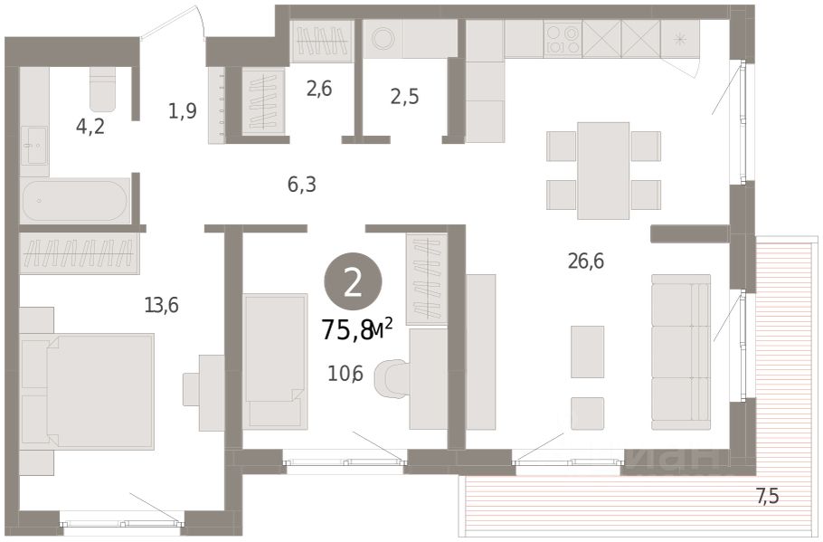 75 м² · Этаж 2 из 9