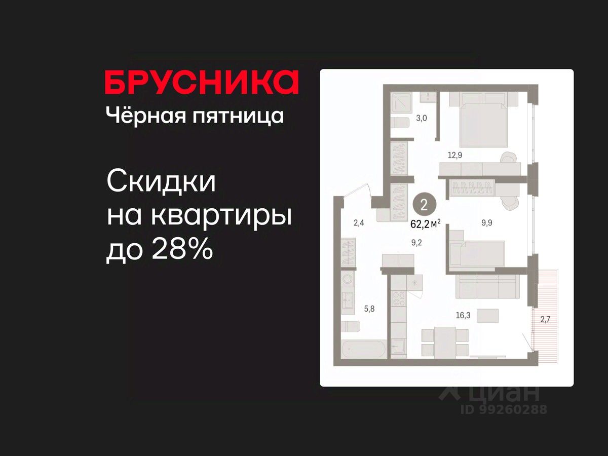Успейте забронировать по акционной цене! Предложение ограничено! Стоимость квартиры указана со скидкой, ваша экономия составит 360,000 RUB. Звоните, мы вам все подробно расскажем! Продается 2-комн. квартира с предчистовой отделкой в ЖК ''Квартал Траектория'' на 4 этаже. Общая площадь: 62.2 кв.м., жилая: 22.8 кв.м., площадь просторной кухни-столовой: 16.3 кв.м. Комнаты изолированные, все окна выходят на одну сторону. В квартире один балкон, два совмещенных санузла. Высота потолков 2.82 м. Дом монолитный, многоподъездный, переменной этажности, от 7 до 16 этажей. Квартира находится во 2-й секции высотой 7 этажей в корпусе 1-2. На этаже 8 квартир. В подъезде 1 грузовой лифт. Начало строительства - 4 квартал 2025 года. Окончание строительства - 4 квартал 2027 года. Оформление сделки по договору долевого участия. Квартира с кухней-гостиной и двумя спальнями в квартале ''Траектория''. Особенности планировки: вид во двор, разнесённые спальни, предчистовая отделка, мастер-спальня, балкон. квартиры в нашей базе: МНВ01-Ж10.4.2. Квартал ''Траектория'' строится в границах улиц Билимбаевской, Расточной, Монтажников и Маневровой Раньше здесь находился оборонный завод 5-ЦАРЗ, основанный в 1945 году. После войны он ремонтировал военную и грузовую технику — от ''Виллисов'' и ''Студебекеров'' до советских ЗИС-5 и ГАЗ-67. Сортировка — район с развитой инфраструктурой, обжитыми жилыми кварталами разных эпох и большим количеством парков. До центра Екатеринбурга — 20 минут на машине. Туда же можно отправиться на автобусе: ближайшая остановка общественного транспорта — в 4 минутах от ''Траектории''. Рядом с ''Траекторией'' расположены магазины, торговый центр, детские сады, школы, поликлиники и полезные сервисы, а также другой проект Брусники — квартал ''Депо''. Если хочется развлечений, можно отправиться в ТРЦ ''Карнавал'' и парк с аттракционами ''Таганская слобода'' — дорога туда займёт не более 10 минут на машине. Квартал ''Траектория'' — первый этап комплексного развития территории, которую раньше занимали производственные здания. На месте бывших цехов Брусника создаст дружелюбную среду и комфортное пешеходное пространство для всего района. Для озеленения квартала мы подобрали больше 60 видов растений: ольху, липу, клён, иву, грушу, вишню, сирень, барбарис, гортензию, смородину, ирис, декоративные травы. Они цветут в разное время года и постоянно меняют настроение двора. В ''Траектории'' мы предусмотрели несколько общественных пространств, открытых для всех горожан: встречающий сквер, лесопарк у храма и событийный сквер между домами. Когда захочется тишины и уединения, можно устроить прогулку во внутренних дворах: в них нет машин и посторонних, зато много зелени, света и мест для отдыха. Каждый двор в квартале ''Траектория'' — продолжение квартиры, только под открытым небом. Здесь можно прогуляться босиком по траве, устроить утреннюю йогу, почитать книгу в гамаке или отправить детей поиграть, не переживая за их безопасность. Мы закроем дворы от машин, чтобы созда