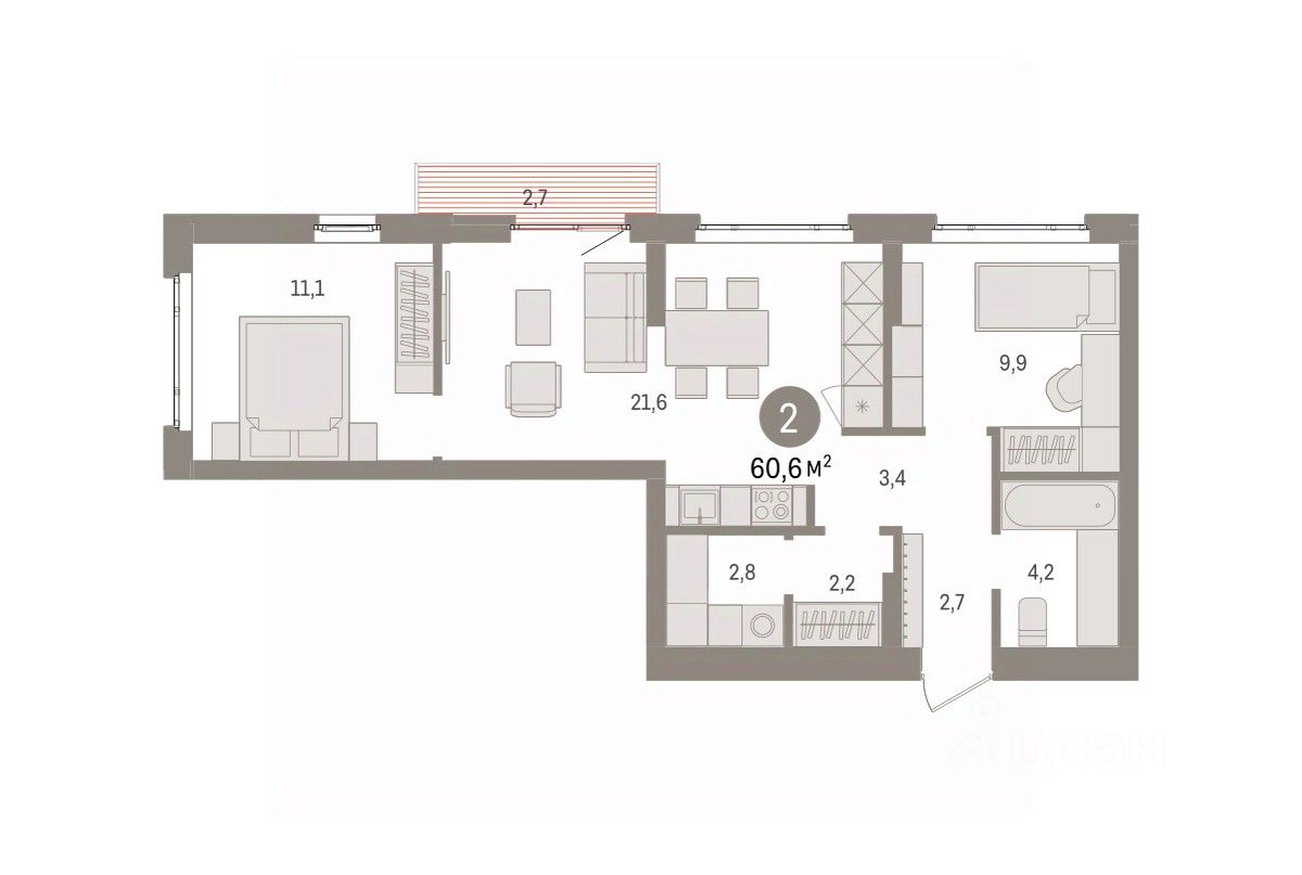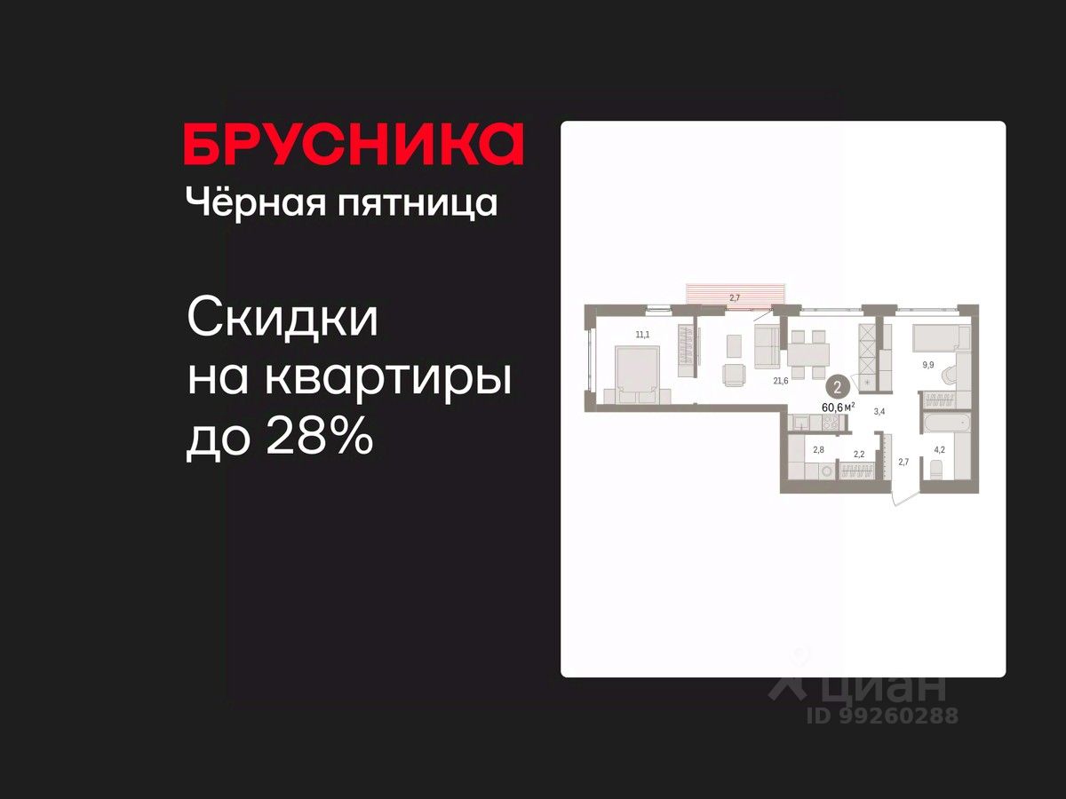 Успейте оформить бронирование по акционной цене! Предложение ограничено! Стоимость квартиры указана со скидкой, ваша экономия составит 480,000 RUB. Звоните, мы вам все подробно расскажем! 2-комн. квартира от застройщика с предчистовой отделкой в ЖК ''Квартал Траектория'' на 4 этаже. Общая площадь: 60.6 кв.м., жилая: 21 кв.м., площадь просторной кухни-столовой: 21.6 кв.м. Квартира угловая, идеально подойдет любителям тишины и панорамных видов. В квартире один балкон, один совмещенный санузел. Высота потолков 2.82 м. Дом монолитный, многоподъездный, переменной этажности, от 7 до 16 этажей. Квартира находится во 2-й секции высотой 7 этажей в корпусе 1-2. На этаже 8 квартир. В подъезде 1 грузовой лифт. Начало строительства - 4 квартал 2025 года. Окончание строительства - 4 квартал 2027 года. Оформление сделки по договору долевого участия. Квартира с кухней-гостиной и двумя спальнями в квартале ''Траектория''. Особенности планировки: гардеробная, разнесённые спальни, предчистовая отделка, постирочная, балкон. квартиры в нашей базе: МНВ01-Ж10.4.7. Квартал ''Траектория'' строится в границах улиц Билимбаевской, Расточной, Монтажников и Маневровой Раньше здесь находился оборонный завод 5-ЦАРЗ, основанный в 1945 году. После войны он ремонтировал военную и грузовую технику — от ''Виллисов'' и ''Студебекеров'' до советских ЗИС-5 и ГАЗ-67. Сортировка — район с развитой инфраструктурой, обжитыми жилыми кварталами разных эпох и большим количеством парков. До центра Екатеринбурга — 20 минут на машине. Туда же можно отправиться на автобусе: ближайшая остановка общественного транспорта — в 4 минутах от ''Траектории''. Рядом с ''Траекторией'' расположены магазины, торговый центр, детские сады, школы, поликлиники и полезные сервисы, а также другой проект Брусники — квартал ''Депо''. Если хочется развлечений, можно отправиться в ТРЦ ''Карнавал'' и парк с аттракционами ''Таганская слобода'' — дорога туда займёт не более 10 минут на машине. Квартал ''Траектория'' — первый этап комплексного развития территории, которую раньше занимали производственные здания. На месте бывших цехов Брусника создаст дружелюбную среду и комфортное пешеходное пространство для всего района. Для озеленения квартала мы подобрали больше 60 видов растений: ольху, липу, клён, иву, грушу, вишню, сирень, барбарис, гортензию, смородину, ирис, декоративные травы. Они цветут в разное время года и постоянно меняют настроение двора. В ''Траектории'' мы предусмотрели несколько общественных пространств, открытых для всех горожан: встречающий сквер, лесопарк у храма и событийный сквер между домами. Когда захочется тишины и уединения, можно устроить прогулку во внутренних дворах: в них нет машин и посторонних, зато много зелени, света и мест для отдыха. Каждый двор в квартале ''Траектория'' — продолжение квартиры, только под открытым небом. Здесь можно прогуляться босиком по траве, устроить утреннюю йогу, почитать книгу в гамаке или отправить детей поиграть, не переживая за их безопасность. Мы закроем дв