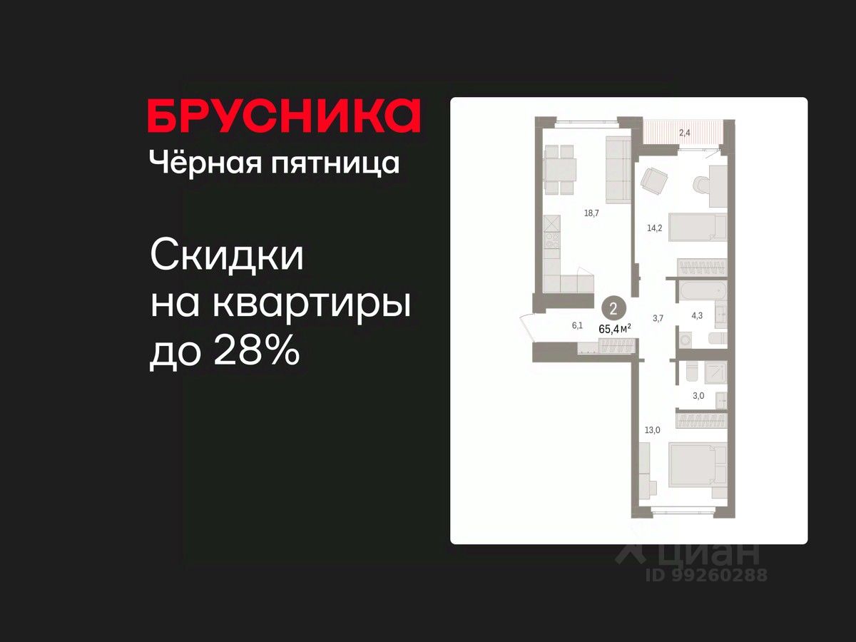 Торопитесь оформить бронирование на этих условиях! Срок предложения ограничен! Стоимость квартиры указана со скидкой, ваша экономия составит 360,000 RUB. Звоните, наши менеджеры вам все расскажут! 2-комн. квартира от застройщика с предчистовой отделкой в ЖК ''Квартал Траектория'' на 4 этаже. Общая площадь: 65.4 кв.м., жилая: 27.3 кв.м., площадь просторной кухни-столовой: 18.9 кв.м. Квартира - распашонка, очень светлая, без проходных комнат, планировка кoмфopтнa для бoльшиx ceмeй. В квартире одна лоджия, два совмещенных санузла. Высота потолков 2.82 м. Дом монолитный, многоподъездный, переменной этажности, от 7 до 16 этажей. Квартира находится в 3-й секции высотой 7 этажей в корпусе 1-2. На этаже 6 квартир. В подъезде 1 грузовой лифт. Начало строительства - 4 квартал 2025 года. Окончание строительства - 4 квартал 2027 года. Оформление сделки по договору долевого участия. Квартира с кухней-гостиной и двумя спальнями в квартале ''Траектория''. Особенности планировки: окна на две стороны, вид во двор, лоджия, разнесённые спальни, предчистовая отделка, мастер-спальня. квартиры в нашей базе: МНВ01-Ж11.4.5. Квартал ''Траектория'' строится в границах улиц Билимбаевской, Расточной, Монтажников и Маневровой Раньше здесь находился оборонный завод 5-ЦАРЗ, основанный в 1945 году. После войны он ремонтировал военную и грузовую технику — от ''Виллисов'' и ''Студебекеров'' до советских ЗИС-5 и ГАЗ-67. Сортировка — район с развитой инфраструктурой, обжитыми жилыми кварталами разных эпох и большим количеством парков. До центра Екатеринбурга — 20 минут на машине. Туда же можно отправиться на автобусе: ближайшая остановка общественного транспорта — в 4 минутах от ''Траектории''. Рядом с ''Траекторией'' расположены магазины, торговый центр, детские сады, школы, поликлиники и полезные сервисы, а также другой проект Брусники — квартал ''Депо''. Если хочется развлечений, можно отправиться в ТРЦ ''Карнавал'' и парк с аттракционами ''Таганская слобода'' — дорога туда займёт не более 10 минут на машине. Квартал ''Траектория'' — первый этап комплексного развития территории, которую раньше занимали производственные здания. На месте бывших цехов Брусника создаст дружелюбную среду и комфортное пешеходное пространство для всего района. Для озеленения квартала мы подобрали больше 60 видов растений: ольху, липу, клён, иву, грушу, вишню, сирень, барбарис, гортензию, смородину, ирис, декоративные травы. Они цветут в разное время года и постоянно меняют настроение двора. В ''Траектории'' мы предусмотрели несколько общественных пространств, открытых для всех горожан: встречающий сквер, лесопарк у храма и событийный сквер между домами. Когда захочется тишины и уединения, можно устроить прогулку во внутренних дворах: в них нет машин и посторонних, зато много зелени, света и мест для отдыха. Каждый двор в квартале ''Траектория'' — продолжение квартиры, только под открытым небом. Здесь можно прогуляться босиком по траве, устроить утреннюю йогу, почитать книгу в гамаке или отправить детей