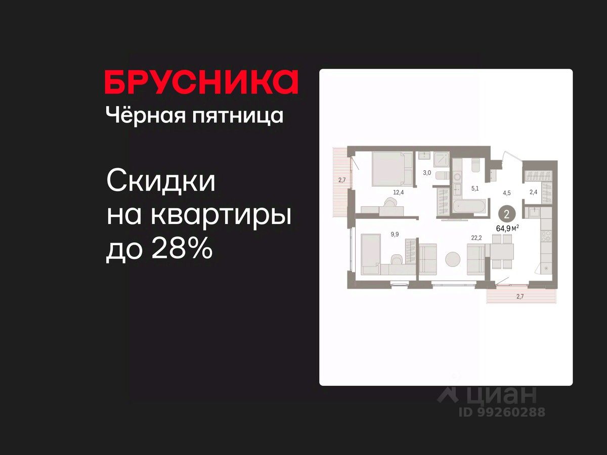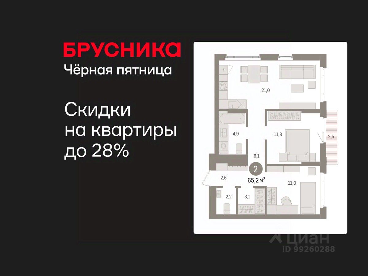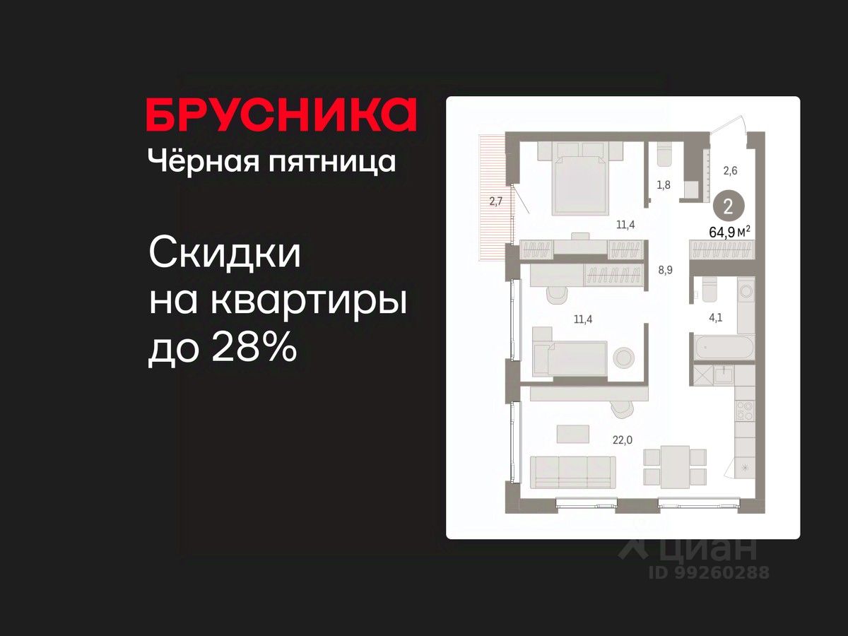 Успейте оформить бронирование на этих условиях! Период акции ограничен! Стоимость квартиры указана со скидкой, ваша экономия составит 350,000 RUB. Звоните, мы вам все подробно расскажем! Двухкомнатная квартира с предчистовой отделкой в ЖК ''Квартал Траектория'' на 11 этаже. Общая площадь: 64.9 кв.м., жилая: 22.3 кв.м., площадь просторной кухни-столовой: 22.2 кв.м. Угловая квартира, идеально подойдет любителям тишины и панорамных видов. В квартире два балкона, два совмещенных санузла. Высота потолков 2.82 м. Дом монолитный, многоподъездный, переменной этажности, от 7 до 25 этажей. Квартира находится в 1-й секции высотой 25 этажей в корпусе 1-1. На этаже 12 квартир. В подъезде 2 пассажирских и 1 грузовой лифт. Начало строительства - 4 квартал 2025 года. Окончание строительства - 4 квартал 2027 года. Оформление сделки по договору долевого участия. Квартира с кухней-гостиной и двумя спальнями в квартале ''Траектория''. Особенности планировки: второй санузел, разнесённые спальни, предчистовая отделка, балкон. квартиры в нашей базе: МНВ01-Ж1.11.11. Квартал ''Траектория'' строится в границах улиц Билимбаевской, Расточной, Монтажников и Маневровой Раньше здесь находился оборонный завод 5-ЦАРЗ, основанный в 1945 году. После войны он ремонтировал военную и грузовую технику — от ''Виллисов'' и ''Студебекеров'' до советских ЗИС-5 и ГАЗ-67. Сортировка — район с развитой инфраструктурой, обжитыми жилыми кварталами разных эпох и большим количеством парков. До центра Екатеринбурга — 20 минут на машине. Туда же можно отправиться на автобусе: ближайшая остановка общественного транспорта — в 4 минутах от ''Траектории''. Рядом с ''Траекторией'' расположены магазины, торговый центр, детские сады, школы, поликлиники и полезные сервисы, а также другой проект Брусники — квартал ''Депо''. Если хочется развлечений, можно отправиться в ТРЦ ''Карнавал'' и парк с аттракционами ''Таганская слобода'' — дорога туда займёт не более 10 минут на машине. Квартал ''Траектория'' — первый этап комплексного развития территории, которую раньше занимали производственные здания. На месте бывших цехов Брусника создаст дружелюбную среду и комфортное пешеходное пространство для всего района. Для озеленения квартала мы подобрали больше 60 видов растений: ольху, липу, клён, иву, грушу, вишню, сирень, барбарис, гортензию, смородину, ирис, декоративные травы. Они цветут в разное время года и постоянно меняют настроение двора. В ''Траектории'' мы предусмотрели несколько общественных пространств, открытых для всех горожан: встречающий сквер, лесопарк у храма и событийный сквер между домами. Когда захочется тишины и уединения, можно устроить прогулку во внутренних дворах: в них нет машин и посторонних, зато много зелени, света и мест для отдыха. Каждый двор в квартале ''Траектория'' — продолжение квартиры, только под открытым небом. Здесь можно прогуляться босиком по траве, устроить утреннюю йогу, почитать книгу в гамаке или отправить детей поиграть, не переживая за их безопасность. Мы закроем д