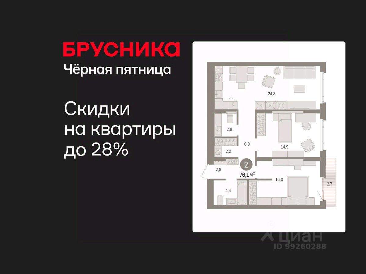 76 м² · Этаж 7 из 16