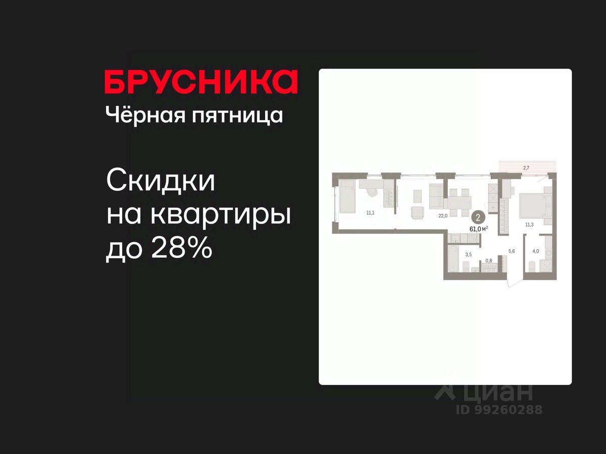 Спешите оформить бронирование, пока действует скидка! Срок акции ограничен! Стоимость квартиры указана со скидкой, ваша экономия составит 360,000 RUB. Информация по телефону, мы вам все подробно расскажем! 2-комн. квартира от застройщика с предчистовой отделкой в ЖК ''Квартал Траектория'' на 4 этаже. Общая площадь: 61 кв.м., жилая: 22.4 кв.м., площадь просторной кухни-столовой: 22 кв.м. Квартира угловая, идеально подойдет любителям тишины и панорамных видов. В квартире один балкон, два совмещенных санузла. Высота потолков 2.82 м. Дом монолитный, многоподъездный, переменной этажности, от 7 до 25 этажей. Квартира находится в 7-й секции высотой 7 этажей в корпусе 1-1. На этаже 8 квартир. В подъезде 1 грузовой лифт. Начало строительства - 4 квартал 2025 года. Окончание строительства - 4 квартал 2027 года. Оформление сделки по договору долевого участия. Квартира с кухней-гостиной и двумя спальнями в квартале ''Траектория''. Особенности планировки: гардеробная, разнесённые спальни, предчистовая отделка, мастер-спальня, балкон. квартиры в нашей базе: МНВ01-Ж7.4.6. Квартал ''Траектория'' строится в границах улиц Билимбаевской, Расточной, Монтажников и Маневровой Раньше здесь находился оборонный завод 5-ЦАРЗ, основанный в 1945 году. После войны он ремонтировал военную и грузовую технику — от ''Виллисов'' и ''Студебекеров'' до советских ЗИС-5 и ГАЗ-67. Сортировка — район с развитой инфраструктурой, обжитыми жилыми кварталами разных эпох и большим количеством парков. До центра Екатеринбурга — 20 минут на машине. Туда же можно отправиться на автобусе: ближайшая остановка общественного транспорта — в 4 минутах от ''Траектории''. Рядом с ''Траекторией'' расположены магазины, торговый центр, детские сады, школы, поликлиники и полезные сервисы, а также другой проект Брусники — квартал ''Депо''. Если хочется развлечений, можно отправиться в ТРЦ ''Карнавал'' и парк с аттракционами ''Таганская слобода'' — дорога туда займёт не более 10 минут на машине. Квартал ''Траектория'' — первый этап комплексного развития территории, которую раньше занимали производственные здания. На месте бывших цехов Брусника создаст дружелюбную среду и комфортное пешеходное пространство для всего района. Для озеленения квартала мы подобрали больше 60 видов растений: ольху, липу, клён, иву, грушу, вишню, сирень, барбарис, гортензию, смородину, ирис, декоративные травы. Они цветут в разное время года и постоянно меняют настроение двора. В ''Траектории'' мы предусмотрели несколько общественных пространств, открытых для всех горожан: встречающий сквер, лесопарк у храма и событийный сквер между домами. Когда захочется тишины и уединения, можно устроить прогулку во внутренних дворах: в них нет машин и посторонних, зато много зелени, света и мест для отдыха. Каждый двор в квартале ''Траектория'' — продолжение квартиры, только под открытым небом. Здесь можно прогуляться босиком по траве, устроить утреннюю йогу, почитать книгу в гамаке или отправить детей поиграть, не переживая за их безопасность.