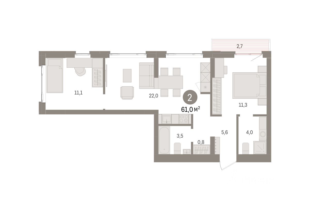 61 м² · Этаж 4 из 7