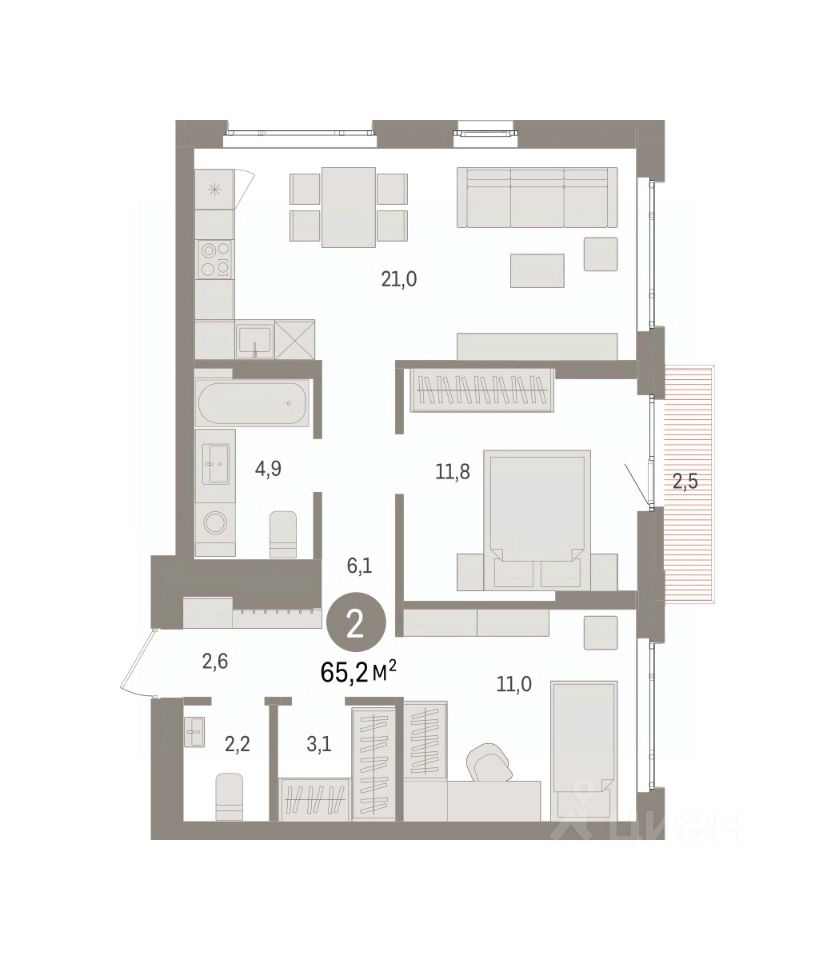 Торопитесь забронировать по акционной цене! Предложение ограничено! Стоимость квартиры указана со скидкой, ваша экономия составит 360,000 RUB. Информация по телефону, мы вам все подробно расскажем! Просторная 2-комн. квартира с предчистовой отделкой в ЖК ''Квартал Траектория'' на 7 этаже. Общая площадь: 65.2 кв.м., жилая: 22.8 кв.м., площадь просторной кухни-столовой: 21 кв.м. Квартира угловая, очень светлая, естественная вентиляция при открытии окон. В квартире один балкон, один совмещенный и один раздельный санузел. Высота потолков 2.82 м. Дом монолитный, многоподъездный, переменной этажности, от 7 до 16 этажей. Квартира находится в 4-й секции высотой 16 этажей в корпусе 1-2. На этаже 7 квартир. В подъезде 1 пассажирский и 1 грузовой лифт. Начало строительства - 4 квартал 2025 года. Окончание строительства - 4 квартал 2027 года. Оформление сделки по договору долевого участия. Квартира с кухней-гостиной и двумя спальнями в квартале ''Траектория''. Особенности планировки: второй санузел, гардеробная, разнесённые спальни, предчистовая отделка, балкон. квартиры в нашей базе: МНВ01-Ж12.7.2. Квартал ''Траектория'' строится в границах улиц Билимбаевской, Расточной, Монтажников и Маневровой Раньше здесь находился оборонный завод 5-ЦАРЗ, основанный в 1945 году. После войны он ремонтировал военную и грузовую технику — от ''Виллисов'' и ''Студебекеров'' до советских ЗИС-5 и ГАЗ-67. Сортировка — район с развитой инфраструктурой, обжитыми жилыми кварталами разных эпох и большим количеством парков. До центра Екатеринбурга — 20 минут на машине. Туда же можно отправиться на автобусе: ближайшая остановка общественного транспорта — в 4 минутах от ''Траектории''. Рядом с ''Траекторией'' расположены магазины, торговый центр, детские сады, школы, поликлиники и полезные сервисы, а также другой проект Брусники — квартал ''Депо''. Если хочется развлечений, можно отправиться в ТРЦ ''Карнавал'' и парк с аттракционами ''Таганская слобода'' — дорога туда займёт не более 10 минут на машине. Квартал ''Траектория'' — первый этап комплексного развития территории, которую раньше занимали производственные здания. На месте бывших цехов Брусника создаст дружелюбную среду и комфортное пешеходное пространство для всего района. Для озеленения квартала мы подобрали больше 60 видов растений: ольху, липу, клён, иву, грушу, вишню, сирень, барбарис, гортензию, смородину, ирис, декоративные травы. Они цветут в разное время года и постоянно меняют настроение двора. В ''Траектории'' мы предусмотрели несколько общественных пространств, открытых для всех горожан: встречающий сквер, лесопарк у храма и событийный сквер между домами. Когда захочется тишины и уединения, можно устроить прогулку во внутренних дворах: в них нет машин и посторонних, зато много зелени, света и мест для отдыха. Каждый двор в квартале ''Траектория'' — продолжение квартиры, только под открытым небом. Здесь можно прогуляться босиком по траве, устроить утреннюю йогу, почитать книгу в гамаке или отправить детей поиграть, не