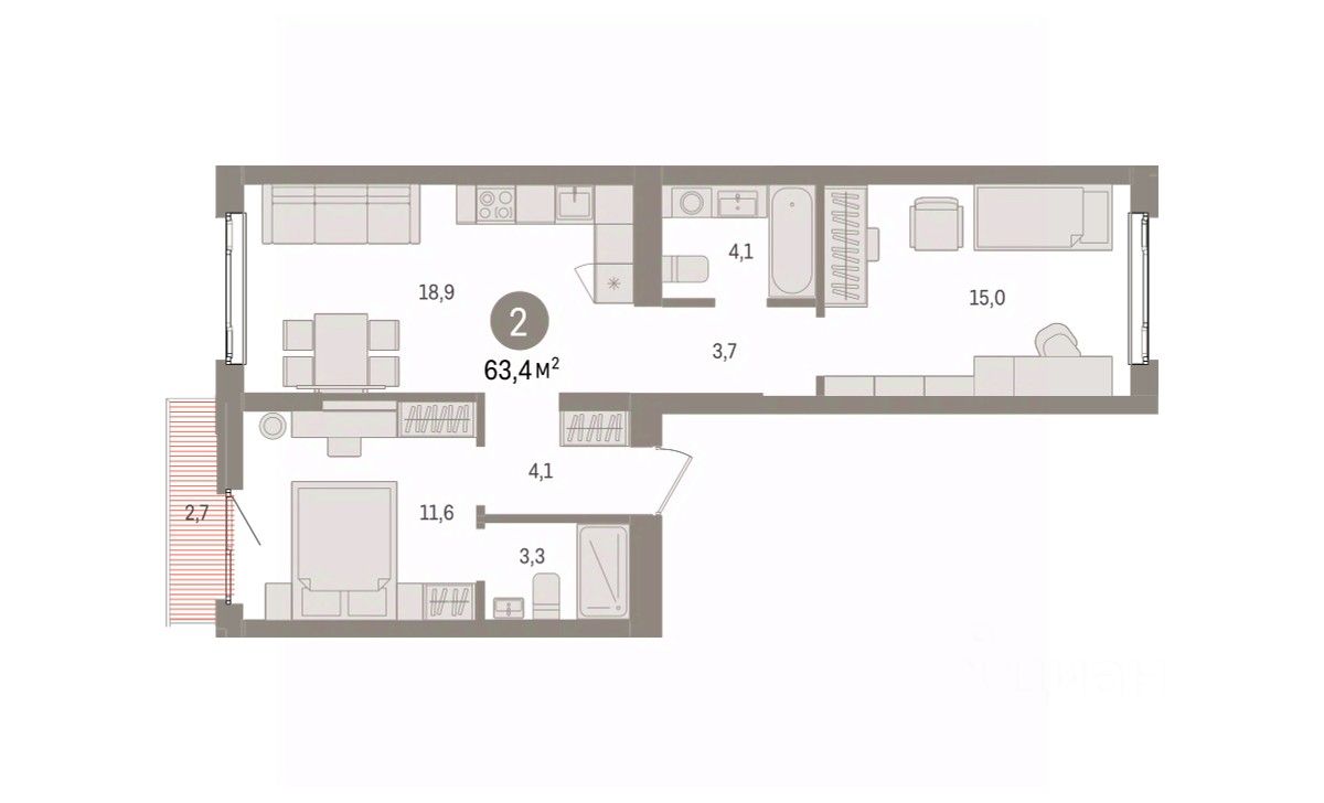 63 м² · Этаж 4 из 7