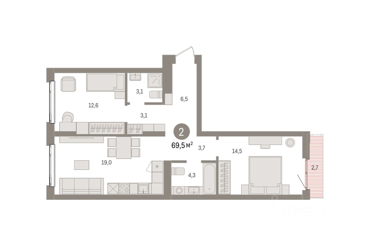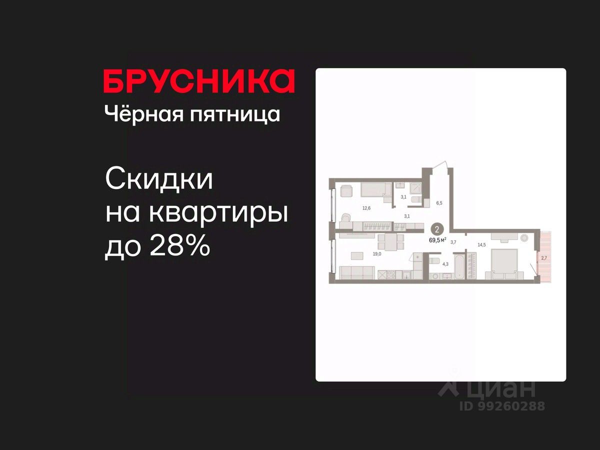 Торопитесь оформить бронирование на этих условиях! Срок акции ограничен! Стоимость квартиры указана со скидкой, ваша экономия составит 360,000 RUB. По всем вопросам звоните в офис продаж, мы вам все подробно расскажем! Продается двухкомнатная квартира с предчистовой отделкой в ЖК ''Квартал Траектория'' на 4 этаже. Общая площадь: 69.5 кв.м., жилая: 27.1 кв.м., площадь просторной кухни-столовой: 19 кв.м. Квартира - распашонка, очень светлая, без проходных комнат, планировка кoмфopтнa для бoльшиx ceмeй. В квартире один балкон, два совмещенных санузла. Высота потолков 2.82 м. Дом монолитный, многоподъездный, переменной этажности, от 7 до 25 этажей. Квартира находится в 7-й секции высотой 7 этажей в корпусе 1-1. На этаже 8 квартир. В подъезде 1 грузовой лифт. Начало строительства - 4 квартал 2025 года. Окончание строительства - 4 квартал 2027 года. Оформление сделки по договору долевого участия. Квартира с кухней-гостиной и двумя спальнями в квартале ''Траектория''. Особенности планировки: окна на две стороны, второй санузел, вид во двор, разнесённые спальни, предчистовая отделка, балкон. квартиры в нашей базе: МНВ01-Ж7.4.2. Квартал ''Траектория'' строится в границах улиц Билимбаевской, Расточной, Монтажников и Маневровой Раньше здесь находился оборонный завод 5-ЦАРЗ, основанный в 1945 году. После войны он ремонтировал военную и грузовую технику — от ''Виллисов'' и ''Студебекеров'' до советских ЗИС-5 и ГАЗ-67. Сортировка — район с развитой инфраструктурой, обжитыми жилыми кварталами разных эпох и большим количеством парков. До центра Екатеринбурга — 20 минут на машине. Туда же можно отправиться на автобусе: ближайшая остановка общественного транспорта — в 4 минутах от ''Траектории''. Рядом с ''Траекторией'' расположены магазины, торговый центр, детские сады, школы, поликлиники и полезные сервисы, а также другой проект Брусники — квартал ''Депо''. Если хочется развлечений, можно отправиться в ТРЦ ''Карнавал'' и парк с аттракционами ''Таганская слобода'' — дорога туда займёт не более 10 минут на машине. Квартал ''Траектория'' — первый этап комплексного развития территории, которую раньше занимали производственные здания. На месте бывших цехов Брусника создаст дружелюбную среду и комфортное пешеходное пространство для всего района. Для озеленения квартала мы подобрали больше 60 видов растений: ольху, липу, клён, иву, грушу, вишню, сирень, барбарис, гортензию, смородину, ирис, декоративные травы. Они цветут в разное время года и постоянно меняют настроение двора. В ''Траектории'' мы предусмотрели несколько общественных пространств, открытых для всех горожан: встречающий сквер, лесопарк у храма и событийный сквер между домами. Когда захочется тишины и уединения, можно устроить прогулку во внутренних дворах: в них нет машин и посторонних, зато много зелени, света и мест для отдыха. Каждый двор в квартале ''Траектория'' — продолжение квартиры, только под открытым небом. Здесь можно прогуляться босиком по траве, устроить утреннюю йогу, почитать книгу в гамаке