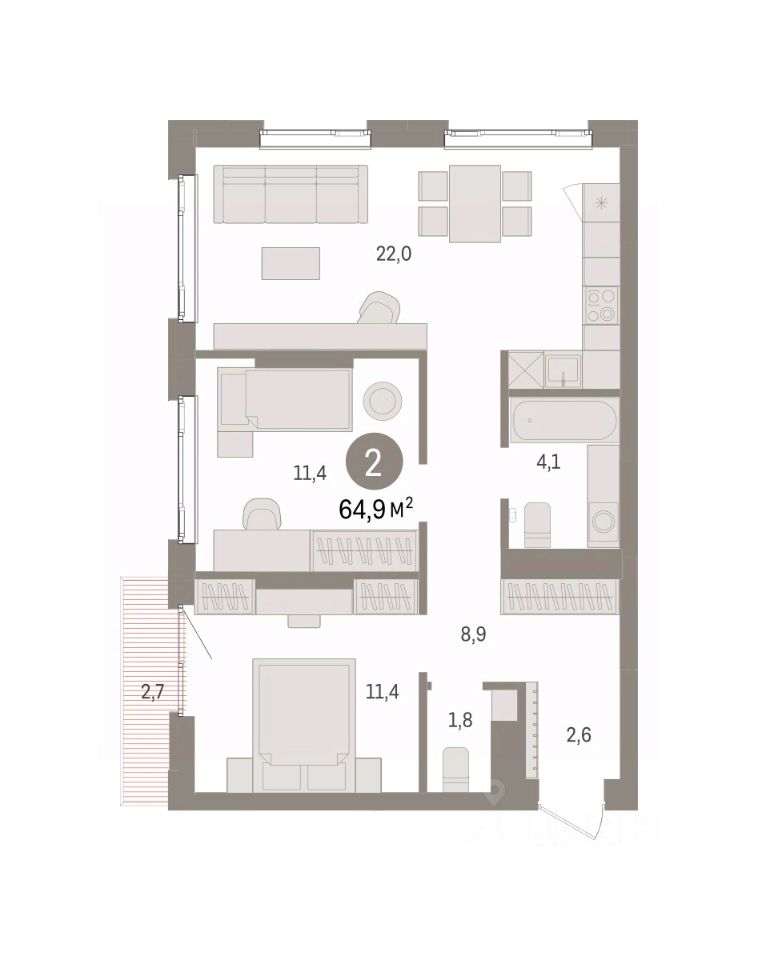 65 м² · Этаж 4 из 7