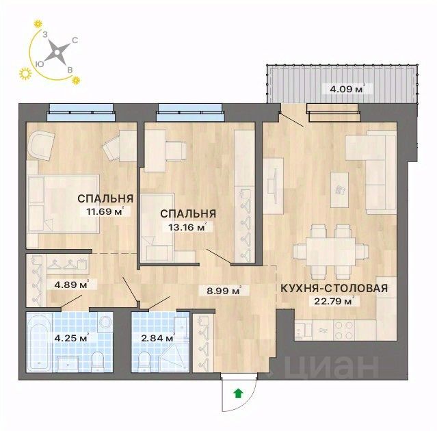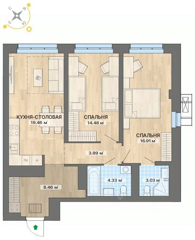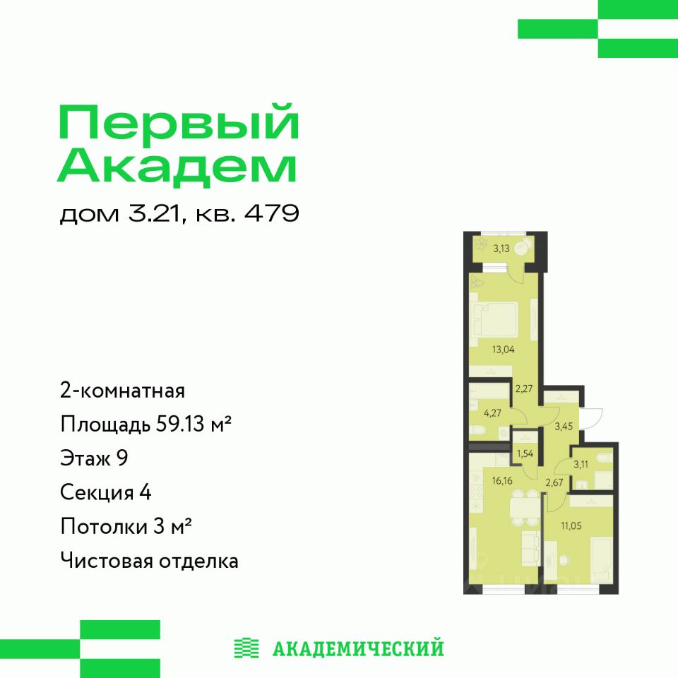 Продается 2-комнатная квартира площадью 59.13 кв.м. от девелопера ''Академический'' в жилом квартале ''Первый Академ''. Срок сдачи дома в 2028 году. Выгоды и скидка напрямую от застройщика. Дом расположен на въезде в район, отличается удобной транспортной развязкой. Рядом новая трамвайная линия и остановка общественного транспорта. Пять домов разной этажности. Эко-тренды во дворах. Холлы и фасады в стиле ар-деко. На территории квартала предусмотрено множество удобств для жильцов, включая видеонаблюдение 24/7, двор без машин, кладовые и подземный паркинг с выходом из лифта, коммерция на первых этажах.