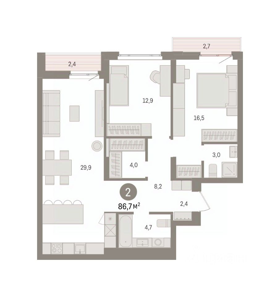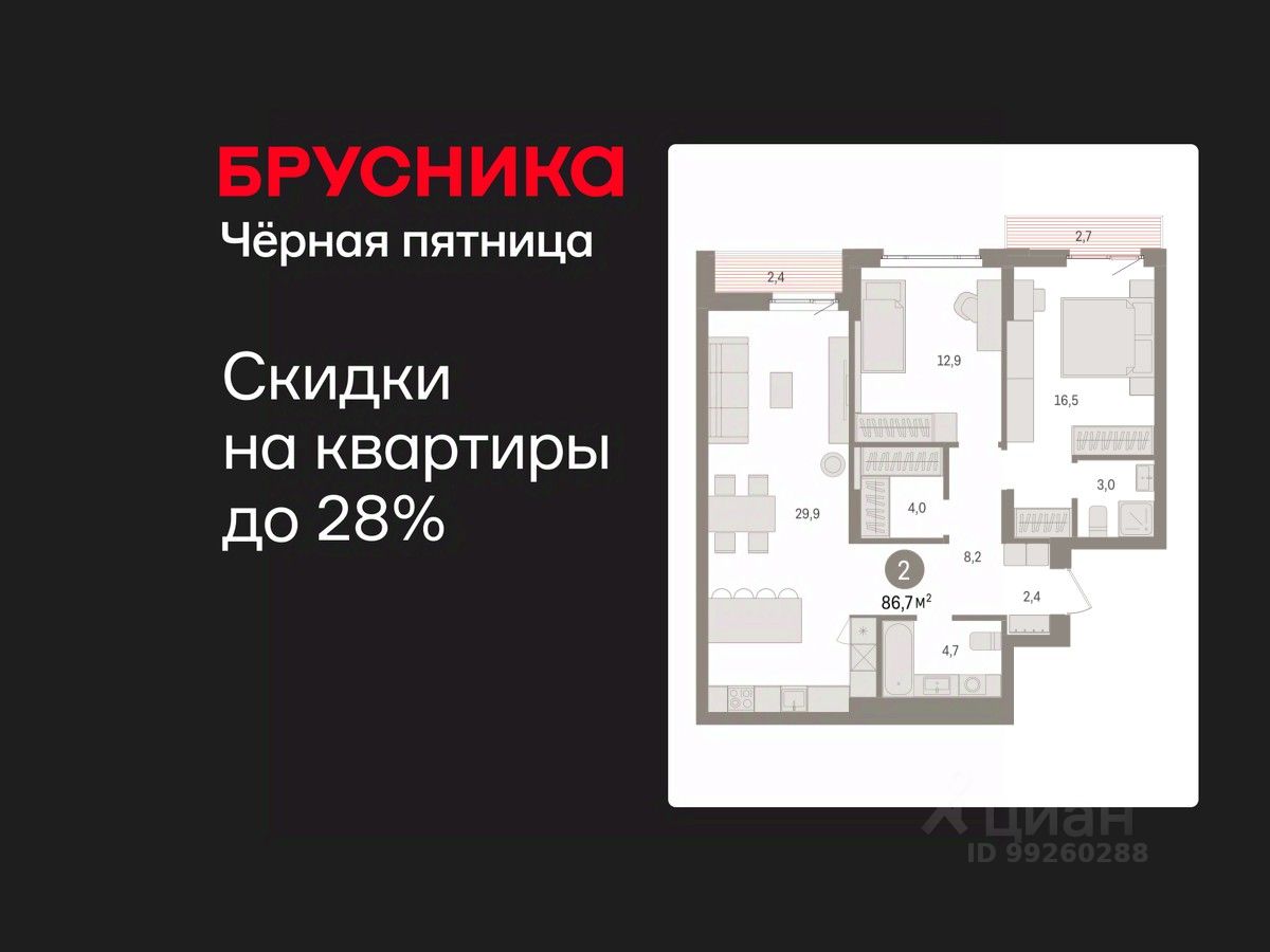 Продается двухкомнатная квартира с предчистовой отделкой в ЖК ''Квартал Траектория'' на 6 этаже. Общая площадь: 86.7 кв.м., жилая: 29.4 кв.м., площадь просторной кухни-столовой: 29.9 кв.м. Комнаты изолированные, все окна выходят на одну сторону. В квартире один балкон и одна лоджия, два совмещенных санузла. Высота потолков 2.82 м. Дом монолитный, многоподъездный, переменной этажности, от 7 до 16 этажей. Квартира находится в 4-й секции высотой 16 этажей в корпусе 1-2. На этаже 7 квартир. В подъезде 1 пассажирский и 1 грузовой лифт. Начало строительства - 4 квартал 2025 года. Окончание строительства - 4 квартал 2027 года. Оформление сделки по договору долевого участия. Квартира с кухней-гостиной и двумя спальнями в квартале ''Траектория''. Особенности планировки: гардеробная, лоджия, разнесённые спальни, предчистовая отделка, мастер-спальня, балкон. квартиры в нашей базе: МНВ01-Ж12.6.1. Квартал ''Траектория'' строится в границах улиц Билимбаевской, Расточной, Монтажников и Маневровой Раньше здесь находился оборонный завод 5-ЦАРЗ, основанный в 1945 году. После войны он ремонтировал военную и грузовую технику — от ''Виллисов'' и ''Студебекеров'' до советских ЗИС-5 и ГАЗ-67. Сортировка — район с развитой инфраструктурой, обжитыми жилыми кварталами разных эпох и большим количеством парков. До центра Екатеринбурга — 20 минут на машине. Туда же можно отправиться на автобусе: ближайшая остановка общественного транспорта — в 4 минутах от ''Траектории''. Рядом с ''Траекторией'' расположены магазины, торговый центр, детские сады, школы, поликлиники и полезные сервисы, а также другой проект Брусники — квартал ''Депо''. Если хочется развлечений, можно отправиться в ТРЦ ''Карнавал'' и парк с аттракционами ''Таганская слобода'' — дорога туда займёт не более 10 минут на машине. Квартал ''Траектория'' — первый этап комплексного развития территории, которую раньше занимали производственные здания. На месте бывших цехов Брусника создаст дружелюбную среду и комфортное пешеходное пространство для всего района. Для озеленения квартала мы подобрали больше 60 видов растений: ольху, липу, клён, иву, грушу, вишню, сирень, барбарис, гортензию, смородину, ирис, декоративные травы. Они цветут в разное время года и постоянно меняют настроение двора. В ''Траектории'' мы предусмотрели несколько общественных пространств, открытых для всех горожан: встречающий сквер, лесопарк у храма и событийный сквер между домами. Когда захочется тишины и уединения, можно устроить прогулку во внутренних дворах: в них нет машин и посторонних, зато много зелени, света и мест для отдыха. Каждый двор в квартале ''Траектория'' — продолжение квартиры, только под открытым небом. Здесь можно прогуляться босиком по траве, устроить утреннюю йогу, почитать книгу в гамаке или отправить детей поиграть, не переживая за их безопасность. Мы закроем дворы от машин, чтобы создать безопасную среду для отдыха. Применим натуральные материалы в отделке малых архитектурных форм — дерево, камень, металл без лишней обра