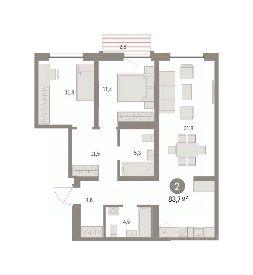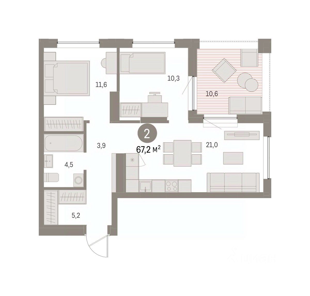 Идеальный баланс уюта, функциональности и личного пространства Отдельная кухня 12,7 м² — просторная и светлая, она станет местом для совместных завтраков или уютных ужинов и, конечно же, кулинарных экспериментов. Здесь легко разместить полноценный гарнитур и обеденную зону с эстетичным круглым столом Родительская спальня 14,8 м² — территория уединения и отдыха. Благодаря выходу на лоджию, комната всегда наполнена естественным светом, а дополнительное пространство можно использовать как зону для отдыха или рабочее место Детская 10,7 м² — комфортная и функциональная. В комнате предусмотрено удобное место под шкаф-купе, чтобы все вещи всегда были под рукой, а пространство при этом оставалось свободным для игр и занятий Ванная 5,7 м² — просторная и удобная, с местом под стиральную машину. Здесь достаточно места для полноценной ванны, чтобы каждый мог расслабиться после долгого дня Прихожая 4,6 м² — компактная, но продуманная, с возможностью разместить систему хранения для верхней одежды и обуви Коридор 7,9 м²