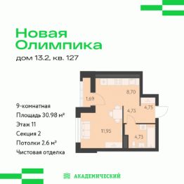 Проект от основателя и главного застройщика Академического района.Расположение и инфраструктура:Квартал ''Новая Олимпика'' включает десять блоков домов, два детских сада в периметре улиц А. Парина А. Ландау А. Вавилова Матвеева.Сроки строительства квартала: 3 квартал 2024 3 квартал 2030.В числе особых преимуществ уникальная локация: напротив Преображенского парка, рядом с Дворцом Дзюдо и Академией тенниса.Развитая транспортная развязка, включающая трамвайную линию.На территории квартала планируется: видеонаблюдение 24/7, подземный паркинг с доступом на лифте, кладовые, велодорожки, многоуровневое озеленение, workout зоны для уличного фитнеса, детские игровые комплексы. На первых этажах будут располагаться торговые галереи.