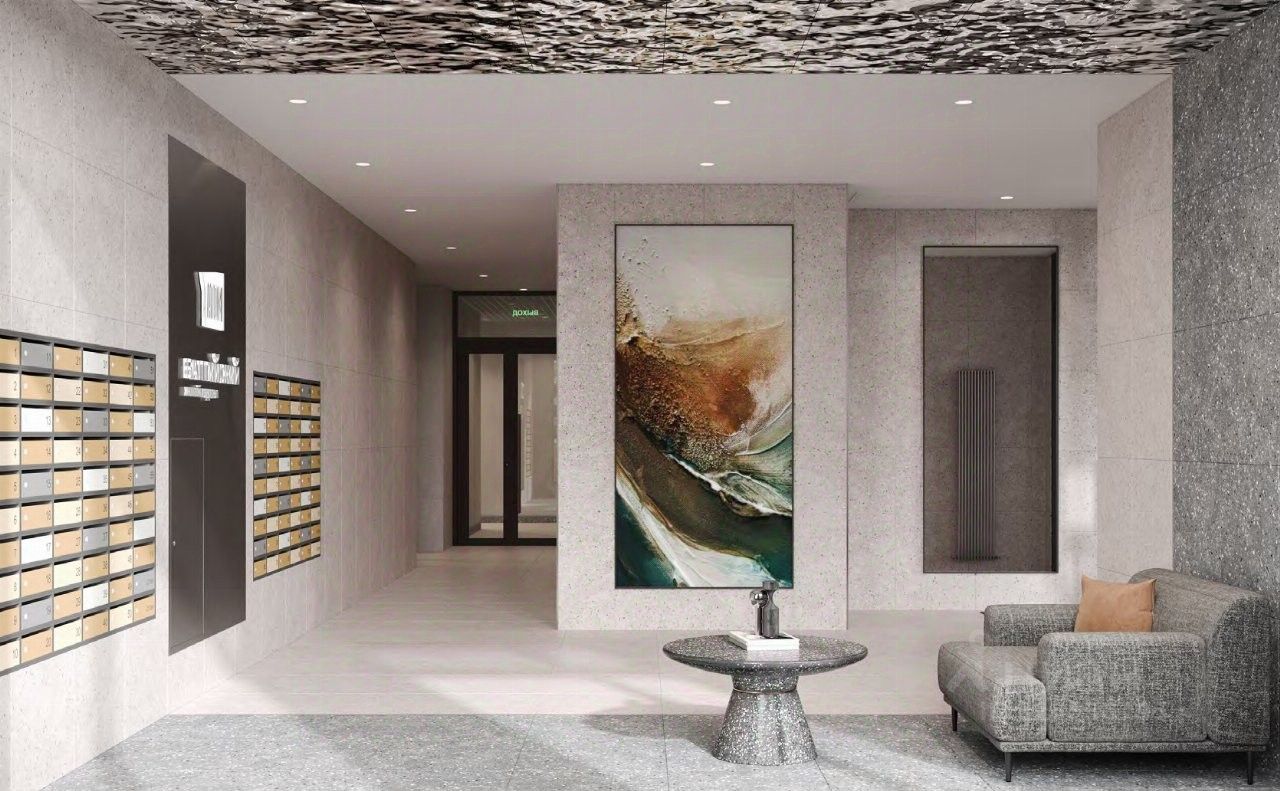 Квартира 9 в подъезде 1. Новое поколение комфорта и технологий для жизни. Закрытый двор без машин. Двухуровневый подземный паркинг с лифтовым спуском и кладовыми. Эргономичные планировки, большие окна, системы фильтрации воды и проветривания. Дизайнерские вестибюли в стилистике советского авангарда и всесезонная игровая комната. Архитектура сочетает лаконичность конструктивизма и современные материалы. В центре квартала запроектирован муниципальный детский сад на 300 мест.