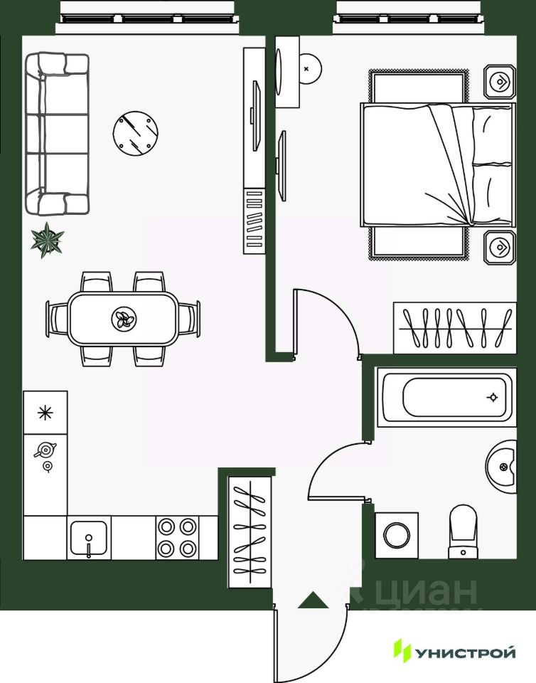 Продается квартира 689, по адресу ЖК ''Солнечный'', корпус Солнечный, блок 7.3-7.4, корпус 2 в Солнечный на 2 этаже, с площадью 43.3 м2.