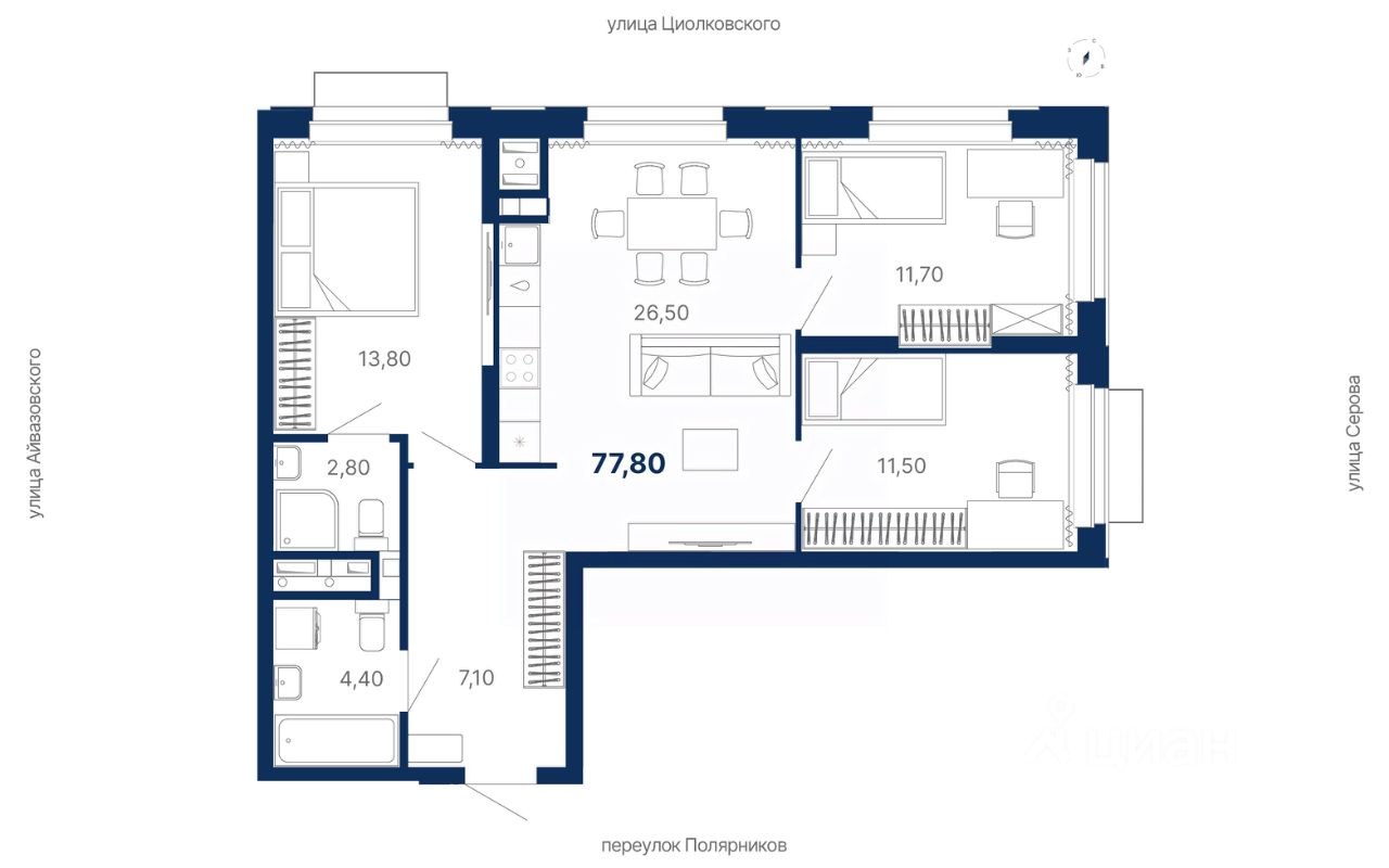 78 м² · Этаж 7 из 25
