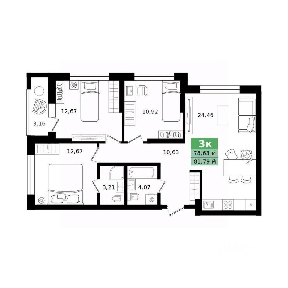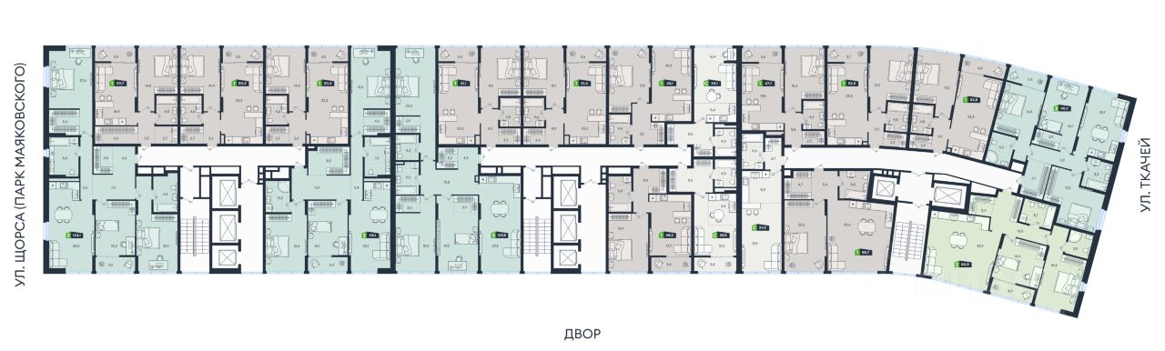 Успейте оформить бронирование по акционной цене! Срок акции ограничен! Стоимость квартиры указана со скидкой, ваша экономия составит 630,000 RUB. По всем вопросам обращайтесь в офис продаж, наши менеджеры вам все расскажут! Квартира с кухней-гостиной и тремя спальнями в Южных кварталах. Особенности планировки: второй санузел, гардеробная, окна в пол, вид во двор, разнесённые спальни, предчистовая отделка, мастер-спальня, постирочная, балкон. квартиры в нашей базе: ЮК04-А1-1-1.6.1. Жилой район ''Южные кварталы'' расположен в границах улиц Московская, Шаумяна и Фурманова, недалеко от автовокзала. До центра города — 10 минут на автомобиле. До станции метро ''Чкаловская'' — 15 минут пешком. Рядом находится парк, школа олимпийского резерва, несколько гимназий, лицей, детские сады и городская больница. ''Южные кварталы'' — проект комплексного редевелопмента территории, разработанный архитекторами Брусники совместно с голландскими бюро. Он разделен на несколько частей, каждая из которых имеет свой характер. Вдоль оживленной Московской появятся более высокие и крупные дома. Профиль спокойной и очень зелёной Шаумяна сформируют кварталы среднеи этажности. В глубине района мы расположим урбан-виллы, чуть дальше — башни-доминанты. Последние будут играть роль визуальных акцентов и впоследствии станут символами этого места. Ближе к Фурманова мы организуем образовательный кластер. Его составят два детских сада на 300 и 325 мест и школа, рассчитанная на 1500 учеников. Школа будет иметь спортивную зону, которая станет доступна и жителям района. Свяжет территорию сеть общественных пространств. Её центральным звеном станет зелёный променад, проходящий сквозь весь район и соединяющий его с парком 50-летия ВЛКСМ. #254AaC