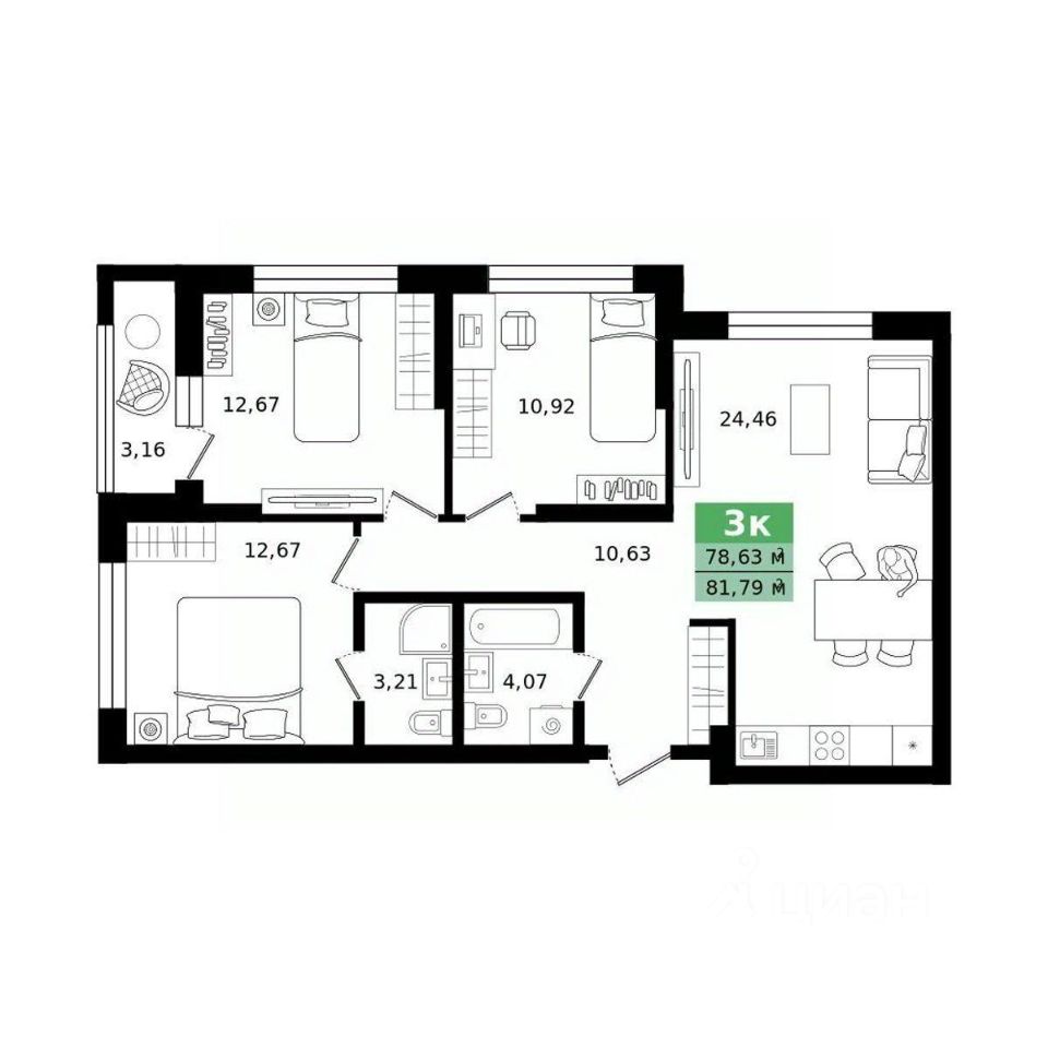 78 м² · Этаж 12 из 25