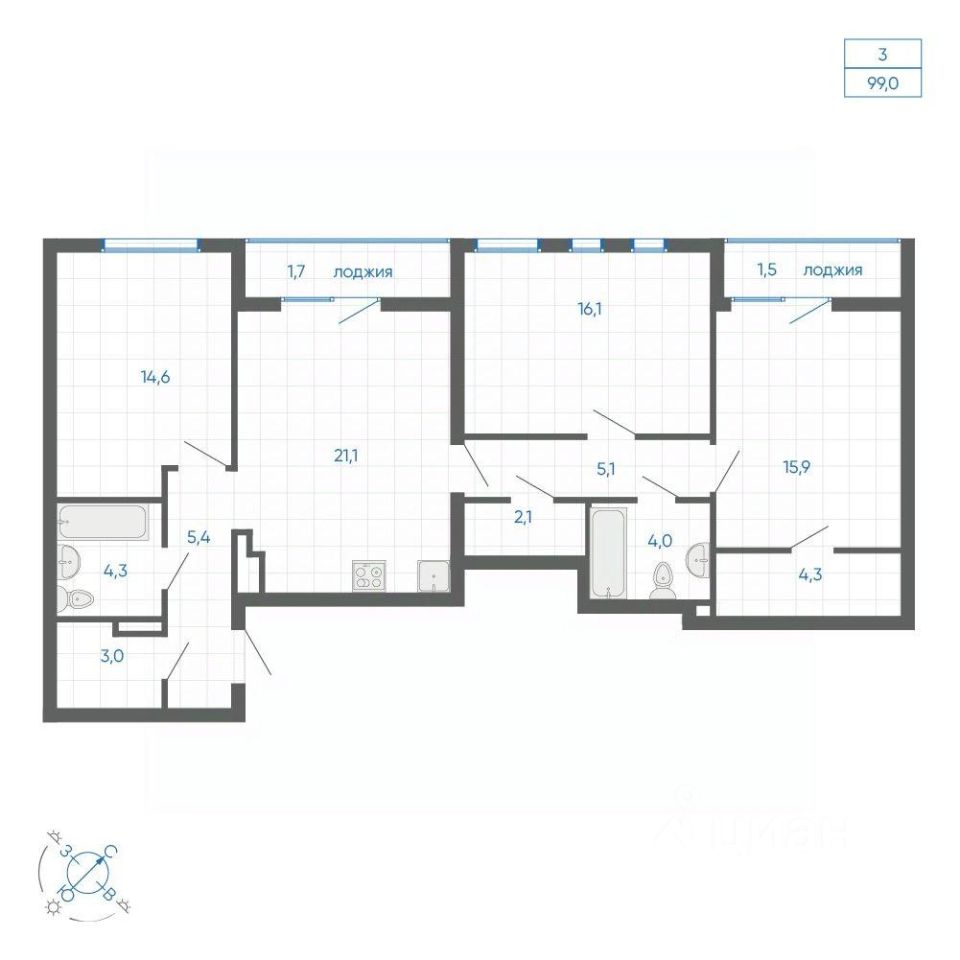 Трехкомнатные