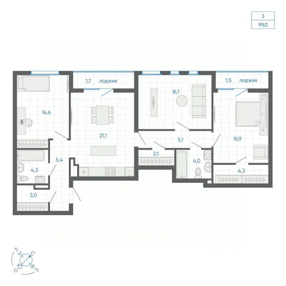5. 3-комнатные