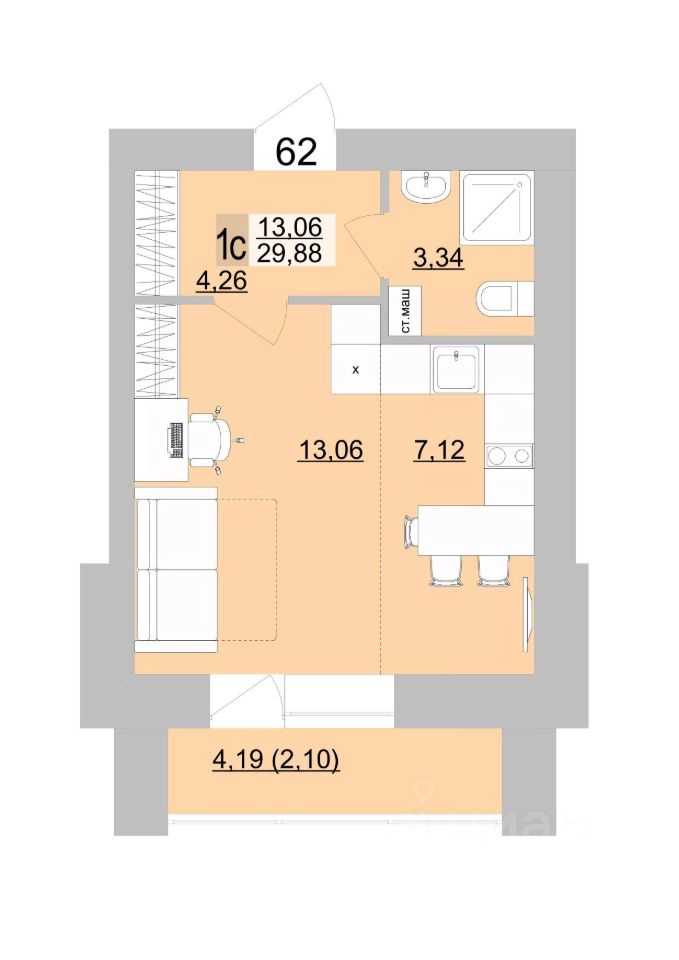 26 м² · Этаж 17 из 19