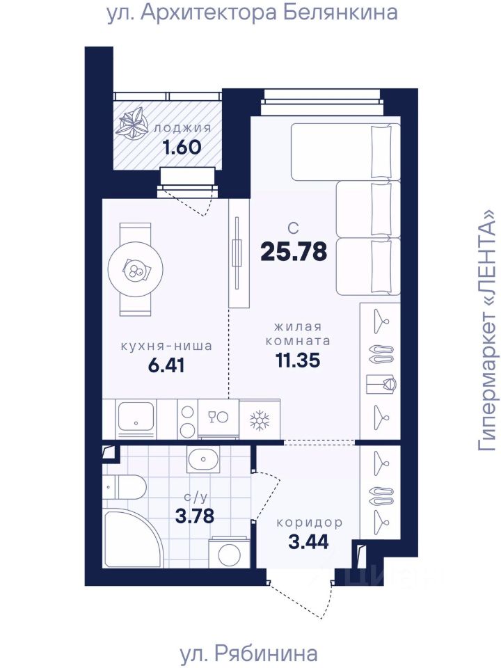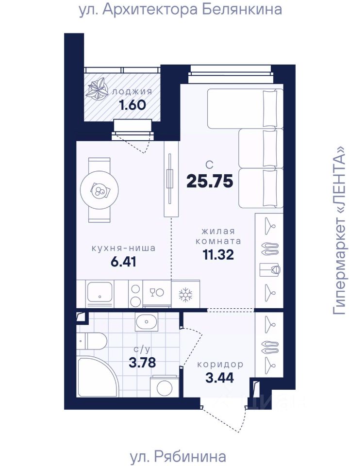 25 м² · Этаж 7 из 26