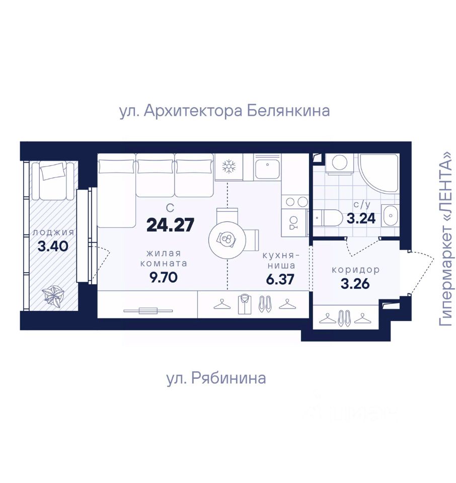 26 м² · Этаж 24 из 25