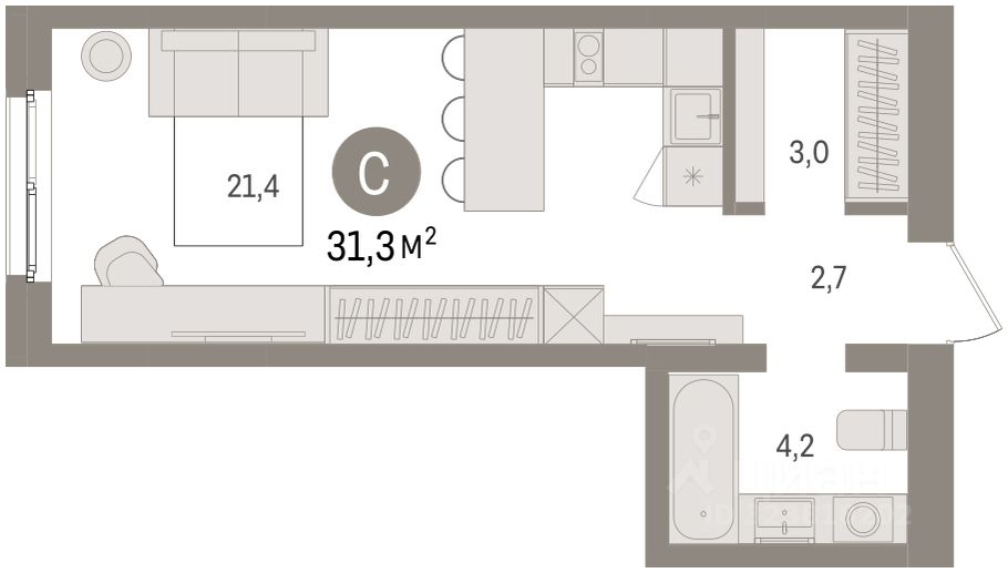 31 м² · Этаж 22 из 25