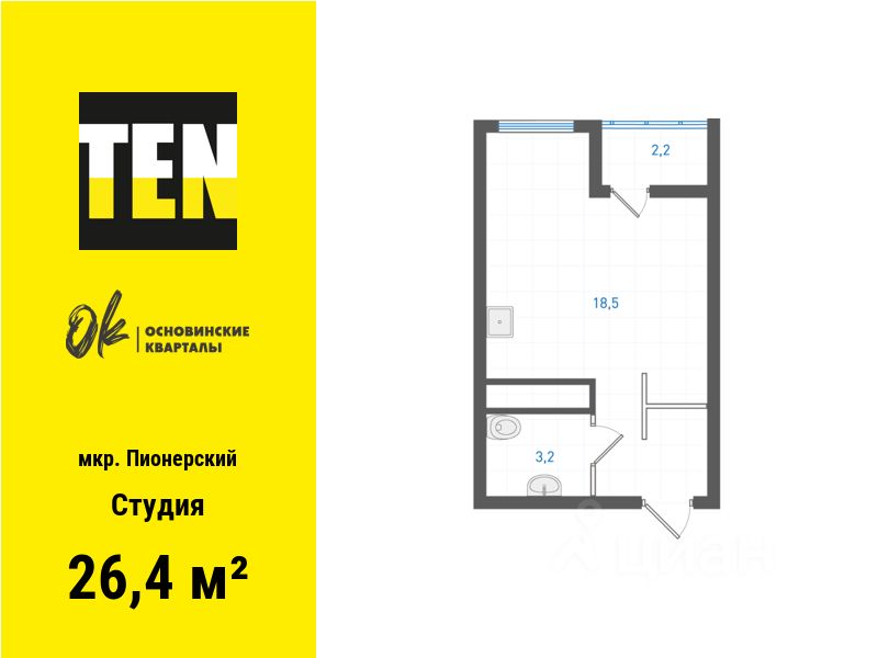 24 м² · Этаж 2 из 26