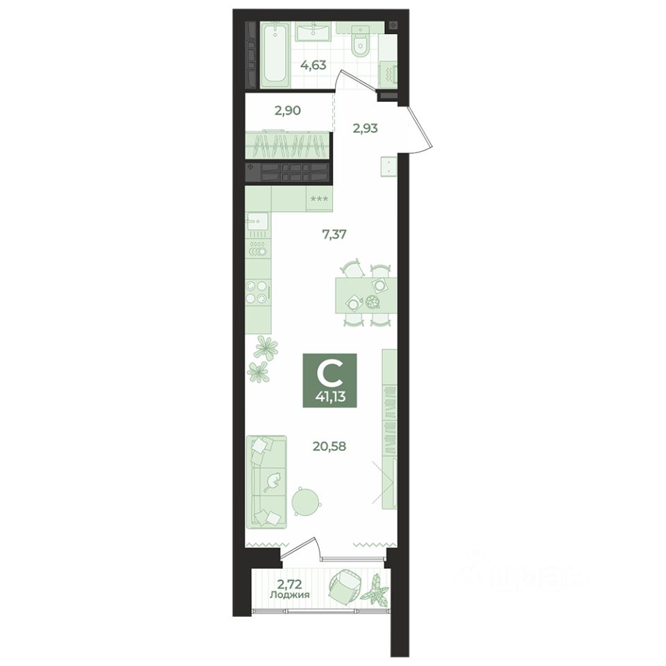 Студия в районе Шишимская горка. Особенности планировки: лоджия, предчистовая отделка. квартиры в нашей базе: ШГР16-Ж5.13.4. ''Шишимская горка'' — район, состоящий из замкнутых кварталов переменной этажности и башен-доминант. Он расположен на Уктусе, в одной из старейших частей Екатеринбурга. Вокруг уже сформирована необходимая инфраструктура. Рядом — две крупных автомобильных развязки (объездная дорога и Кольцовский тракт), Уктусский лесопарк, торговый центр ''Глобус'', аквапарк, ледовая арена, океанариум, кинотеатр, школы и детские сады. До ближайшей станции метро — 15 минут на общественном транспорте. В основе каждого проекта — принцип mixed-use, который подразумевает объединение в пределах одной локации коммерческой, жилой и развлекательной функций. На первых этажах расположены коммерческие помещения: магазины, кафе, аптеки, спортивные центры и другие полезные сервисы. Между собой кварталы соединены широким пешеходным бульваром с игровыми и спортивными площадками, деревьями и кустарниками, привезенными из европейских питомников. Всего более 30 видов растений. Концепцию благоустройства архитекторы построили на принципах скандинавского натурализма, сочетающего в себе функциональность, простоту и сдержанность. Двор дома — ''Каньон'', это крупный парк, который связывает все очереди строительства и располагается на рельефе с перепадом до 40 метров. Каньон представляет собой каскад ландшафтных зон, связанных рампами и лестницами, которые зигзагом поднимаются в сторону горы Уктус. Стилистически и идеологически ландшафт выполнен в скандинавском стиле. #2m9zOZ