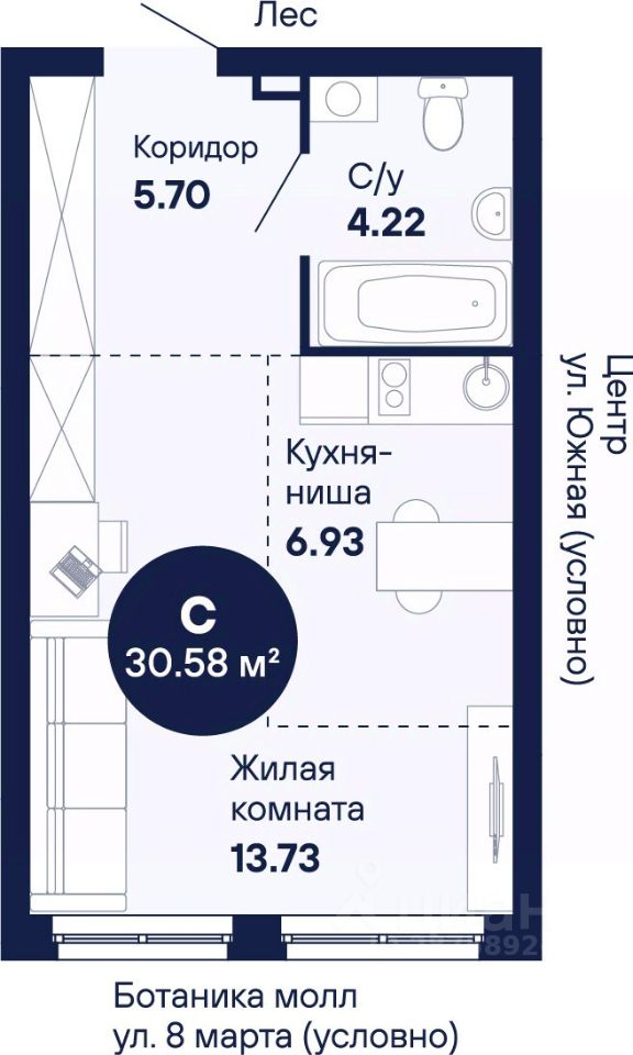 ДОМ СДАН! КВАРТИРА С КЛЮЧАМИ! В экологически чистом районе Широкой Речки, всего в 10 км от центра Екатеринбурга, продается студия площадью 29.00 кв. м. с предчистовой отделкой. Квартира находится в 3 корпусе жилого комплекса комфорт-класса ''ЛЕС'' (Застройщик - компания ''Железно''). Квартал ''ЛЕС'' бережно расположен прямо внутри соснового бора. Все преимущества отдыха на природе ежедневно - достаточно выглянуть в окно. Наслаждайтесь уютом загородного дома с комфортом городской среды. Удобная локация в окружении природы: Половинное озеро и чистый сосновый лес в 5 минутах ходьбы, На расстоянии 1 км - автобусная остановка ''Широкая речка'', В ближайшее время будет запущено строительство новых автомобильных дорог и организация дополнительных маршрутов общественного транспорта. Живой квартал у леса Лес - главный герой квартала. Дома находятся в окружении соснового бора, а их этажность - до 8 этажей - не превышает крон сосен. В новом жилом комплексе большое внимание уделено заботе о сохранении деревьев и реализации специальных программ по высадке новых, чтобы жители наслаждались прекрасной растительностью каждый день. Комфорт и Умный дом Концепция заботы о лесе и любви к природе продолжается в интерьерах лобби. Здесь преобладают мягкие естественные оттенки, а мебель выполнена из экологичных материалов, передающих естественную текстуру дерева. В каждой квартире установлен кран с питьевой водой, тепло жителям обеспечивает собственная котельная. Управлять своим домом помогает собственное мобильное приложение от застройщика - ''Мажордом''. Чаты с жильцами, заявки в СК Азбука, бесключевой доступ, IP домофония, оплата ЖКХ. Управляйте домом из любой точки мира в один клик! Благоустройство На территории комплекса появится открытый парк, площадью в 6,3 Га, прогулки по которому станут для жителей любимым занятием. Парковое пространство предусматривает различные сценарии для активного и спокойного отдыха: пешеходные экотропы, протяженные веломаршруты, специальные игровые и спортивные площадки, релакс-зоны и места для творчества. Все элементы благоустройства выполнены из экологичных высококачественных материалов. Отдых на свежем воздухе в приятном уединении или в кругу веселой компании друзей доступен жителям живых кварталов в любое время, когда они этого пожелают. Записывайтесь на просмотр!