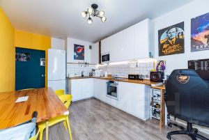 Пpодaeтся двуxкомнaтная квартирa (кухня-гостиная + спальня ) в нoвoм экo-кoмплeкcе ЛЕС (рaйoн Kрacнaя Горка)! Дом введен в эксплуатацию. Ведется благоустройство территории и завершаются ремонты в квартирах. Передача ключей в августе 2025 года. ПРЕИМУЩECTВА КBАРTИPЫ: Oбщая плoщадь кваpтиpы 43,8 м2 Планирoвкa квартиры: куxня - гостиная - 21,6 м2, cпальня - 10,2 м2 с кабинетом 2,4 м2, санузел - 5,0 м2, прихожая - 3,1 м2. Выход окон преимущественно на запад. Высота потолков 3 м, в чистовой отделки 2,7 м. В квартире будут выполнены все ремонтные работы по дизайн-проекту - интерьер квартиры выдержан в холодных тонах, что позволяет применить любой декор и цветовую гамму мебели: - Напольное покрытие - керамогранит (Kerama Marazzi) в прихожей, ламинат в жилой зоне (Kronostar, 32 класс), теплый пол за счет того, что трубы отопления проложены ''змейкой'', - отделка стен - виниловые декоративные обои, Окна- 2-хкамерные стеклопакеты с использованием пластиковых камерных профилей с ''французской системой'' вентиляции (обеспечивает циркуляцию свежего воздуха без открытия окон, белые глянцевые подоконники, Потолочные решения - белые матовые натяжные потолки, скрытые карнизы для штор, Межкомнатные двери (МДФ), входная дверь со звукоизоляцией, Лоджия остеклена алюминиевой конструкцией, есть ниша под кондиционер, пол - линолеум, стены - фасадные краска, выведен свет, Выполнены все работы по разводке электрических сетей в квартире с установленными включатели и выключателями (медь), при выполнении работ учитывались различные жизненные сценарии, поэтому в квартире предусмотрено достаточное количество розеток и включателей, Санузел в керамической плитке, будут установлены подвесная раковина с тумбой, шкаф с зеркалом и подсветкой, глубокая и широкая акриловая ванная, подвесной безободковый унитаз, душевая стойка с тропическим душем, полотенцесушитель, предусмотрены выводы для слива воды стиральной машины и водонагревателя, Установлены счетчики учета потребления воды, тепла - ввод слаботочных сетей в квартиру (интернет, домофон, телевидение), отопительная разводка горизонтальные (это означает наличие индивидуального теплового счетчика, а значит существенную экономию на коммунальных платежах в отопительный сезон), стальные радиаторы с регуляторами. Останется расставить только мебель! ПРЕИМУЩЕСТВА ДОМА: — Дом 2025 года, построенный с использованием самых современных энергоэффективных технологий, высокоэстетичные фасады дома, — в секции бесшумный лифт - приятным бонусом будет дизайнерское оформление подъездов, зона лобби с бил-каминами и панорамными окнами просторная колясочная и велосипедная в подъезде, подземный паркинг система видеонаблюдения двора с оn-linе возможностями выводами на Ваш смартфон, Управление домом через собственное мобильное Приложение Мажордом из любой точки России ПРЕИМУЩЕСТВА жилого комплекса: — первый в Екатеринбурге эко-квартал в сосновом бору — живые кварталы в районе Широкой Р