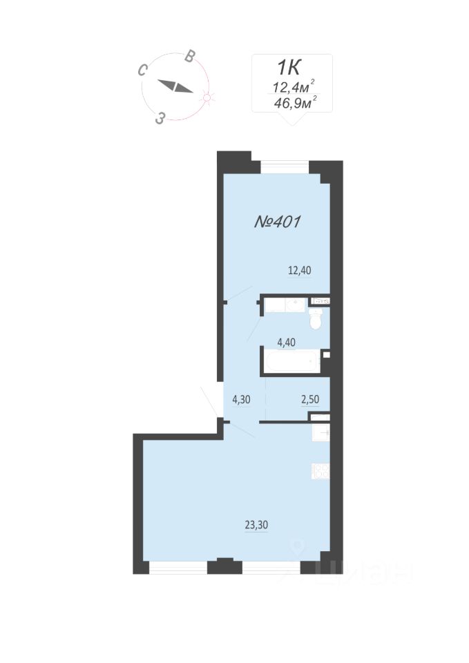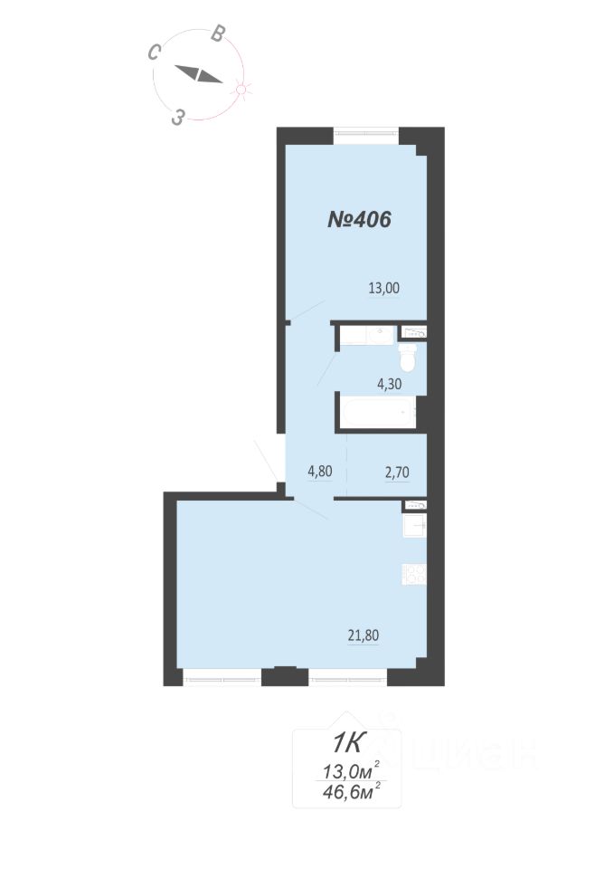 49 м² · Этаж 13 из 30