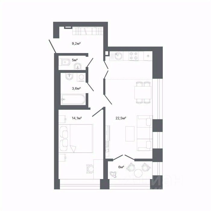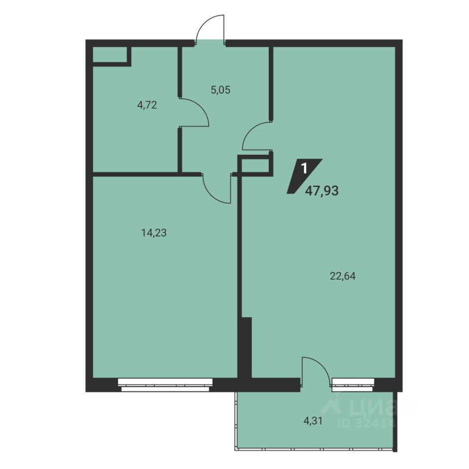 32 м² · Этаж 6 из 9