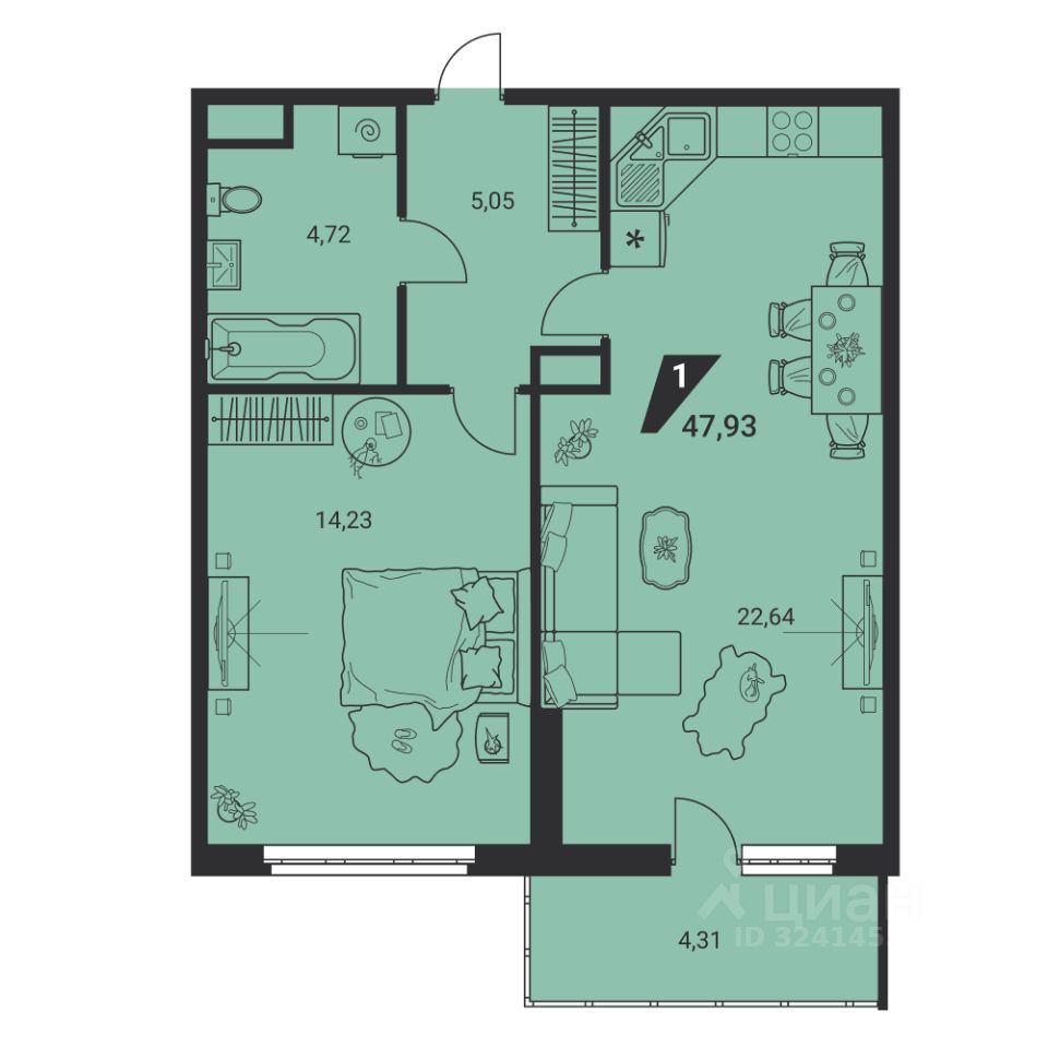 47 м² · Этаж 17 из 25